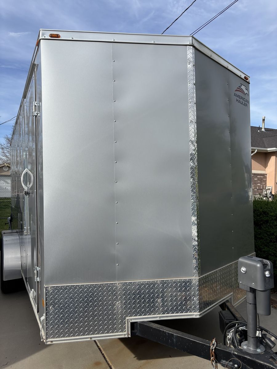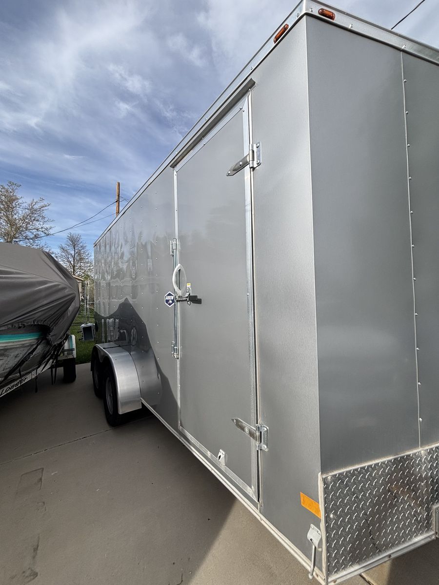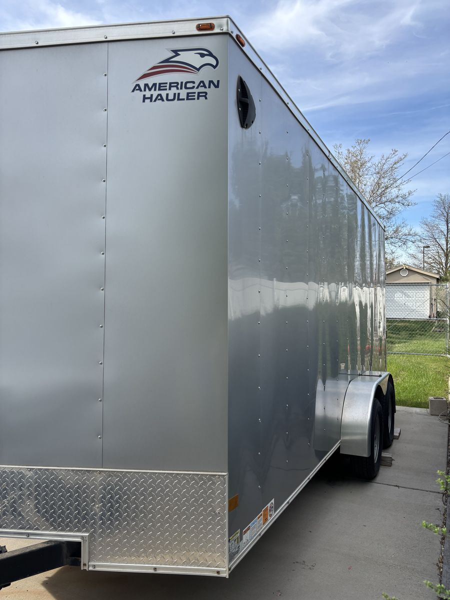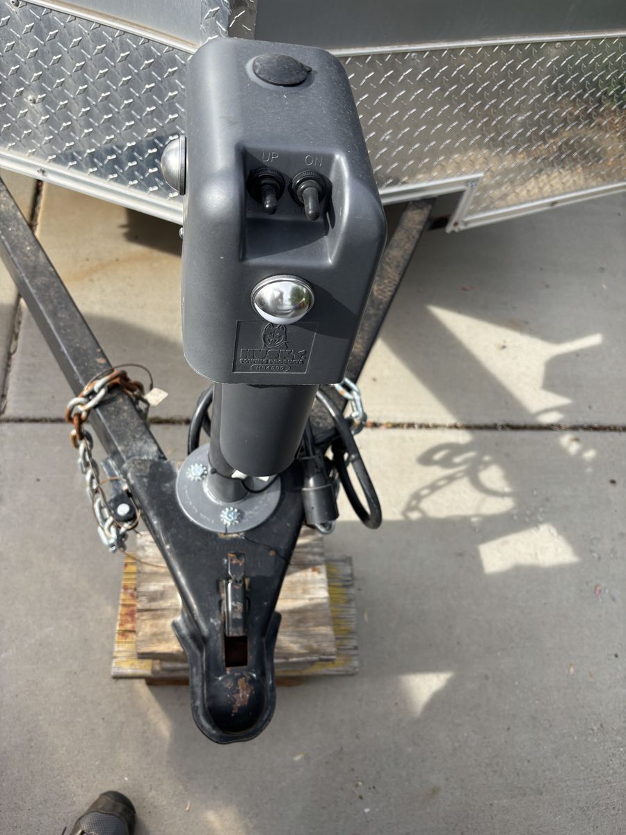 Like new, excellent condition. Textured exterior deck coating floor, electric jack, tires/spare excellent condition, four tie down locations. Used only one season to haul snowmobiles.