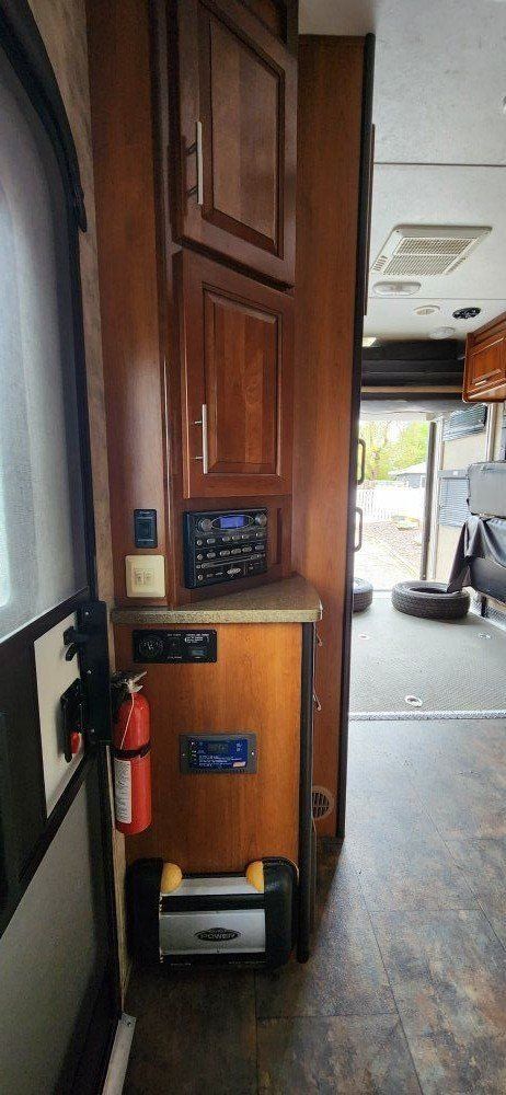 3-burner cooktop with 17” oven Microwave 6 cu ft refrigerator 32” Sony TV Jensen stereo system (CD/DVD/MP3) Interior & exterior speakers + subwoofer Satellite ready with antenna Generator controls with hour meter and fuel gauge