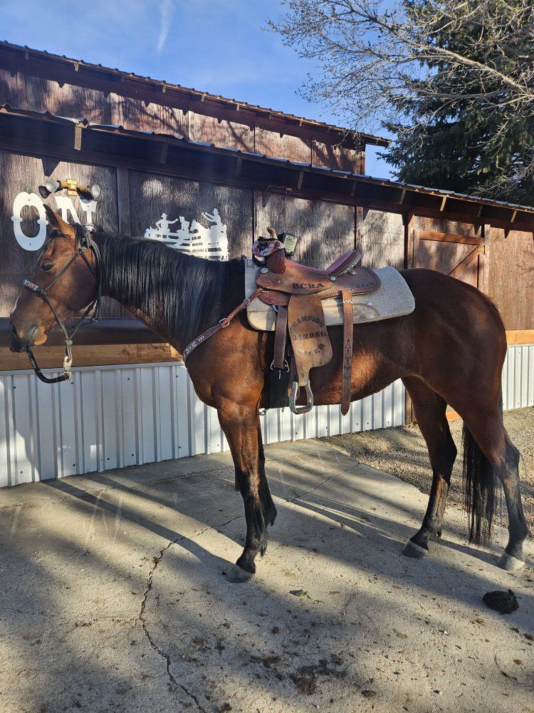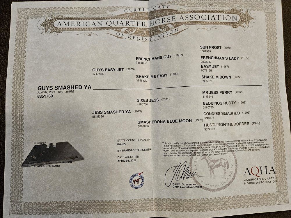 "Fancy " has a very solid foundation. Great stop, moves off of your feet, I have ridden her in the mountains behind my house. She is ready to go do time onlies in barrels and poles. I am to busy and haven't had the time. Frenchmans Guy bred. Pic of her sire. Located in Inkom. 10,500