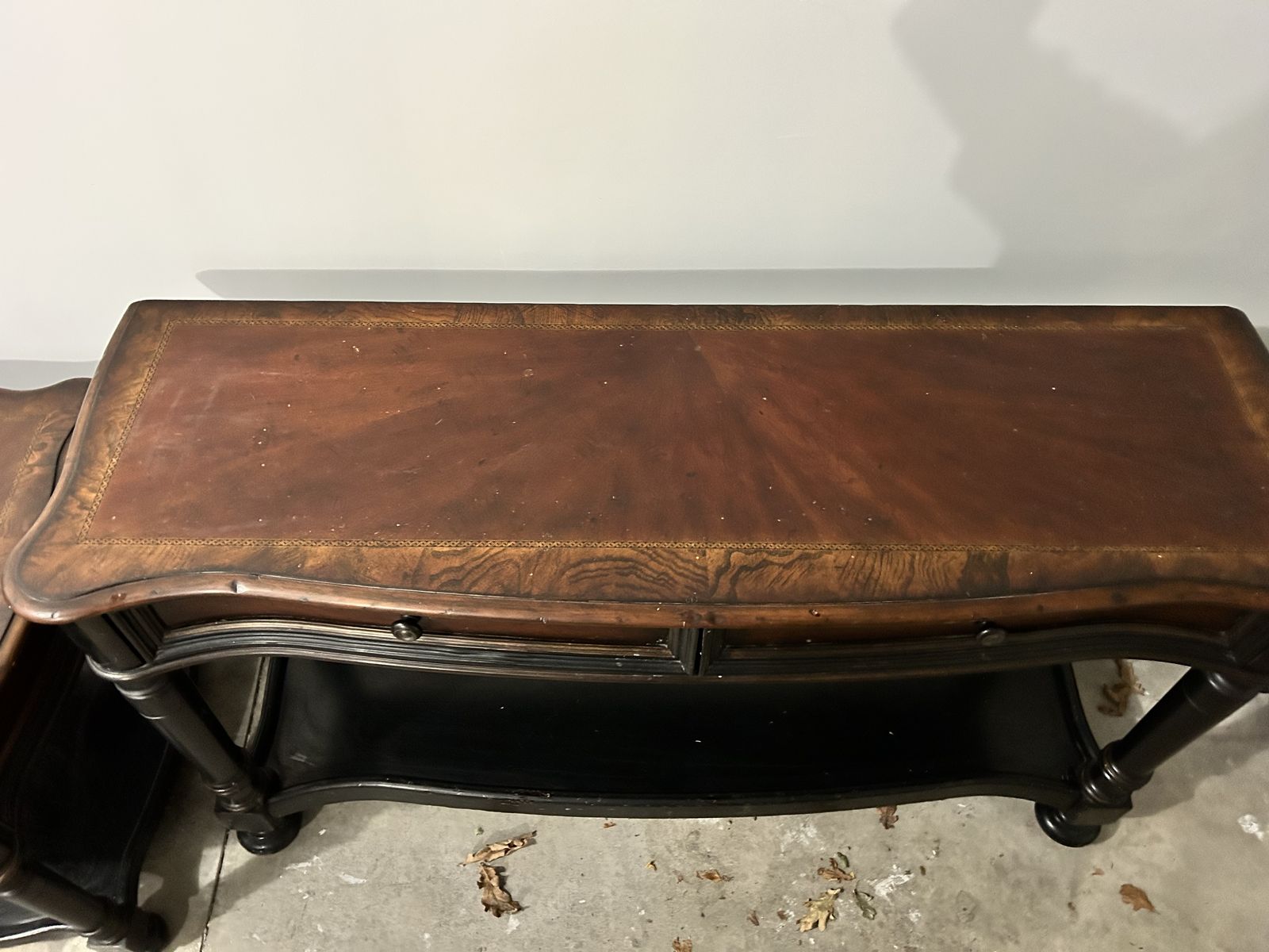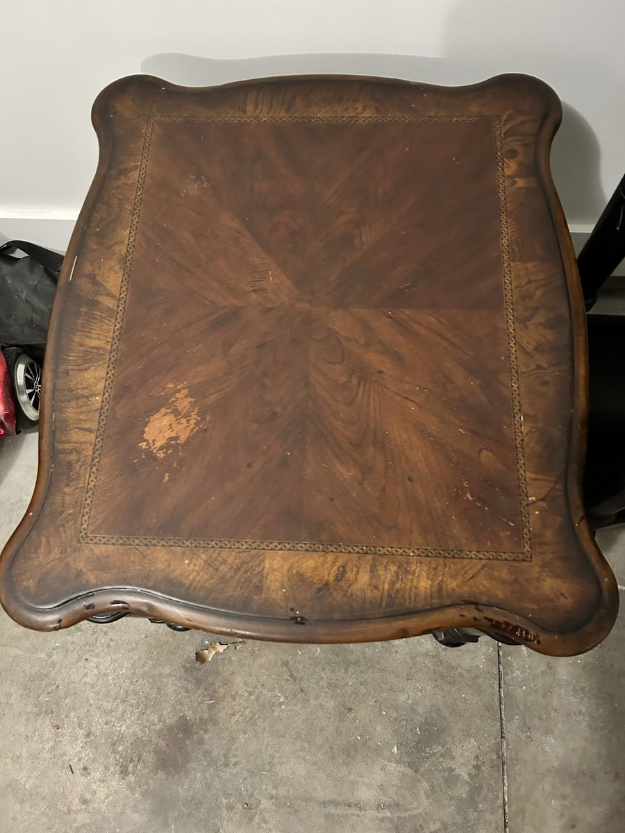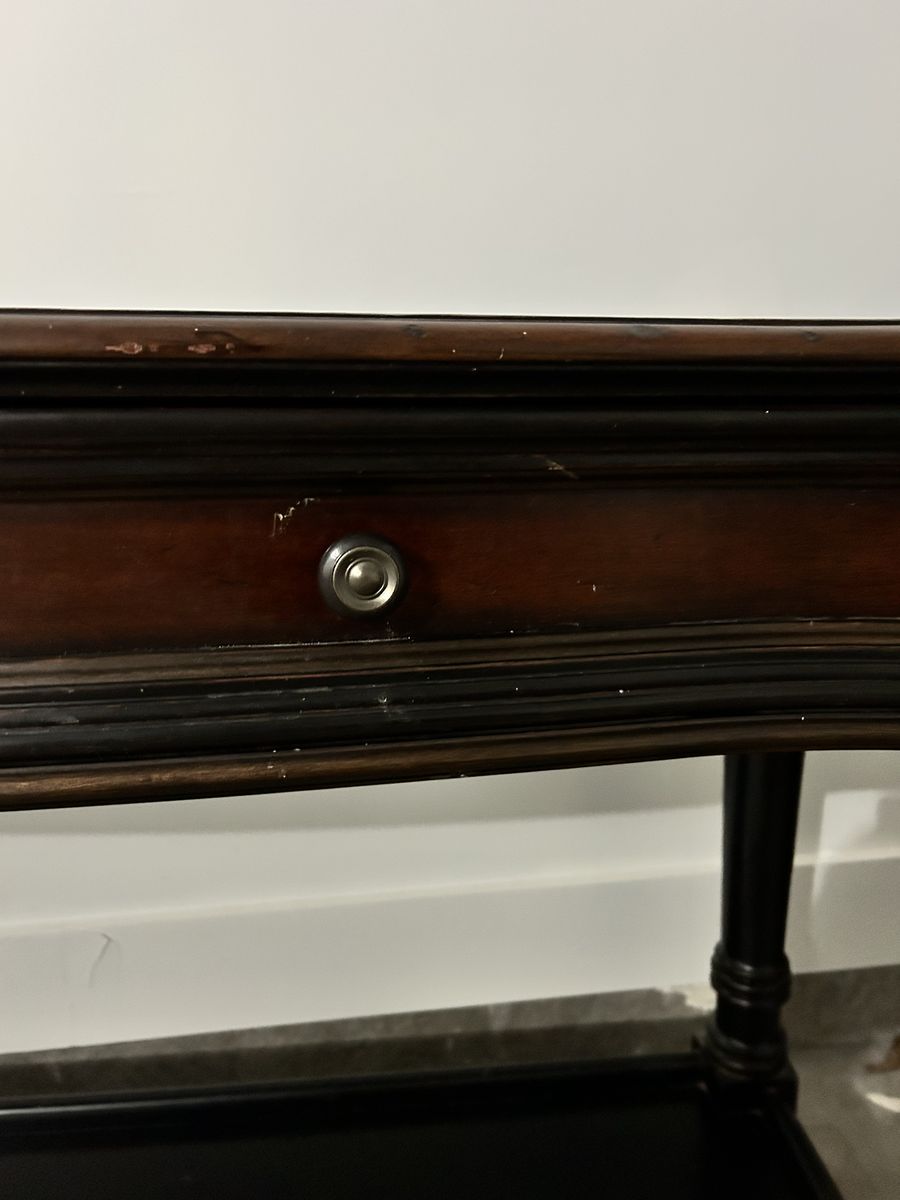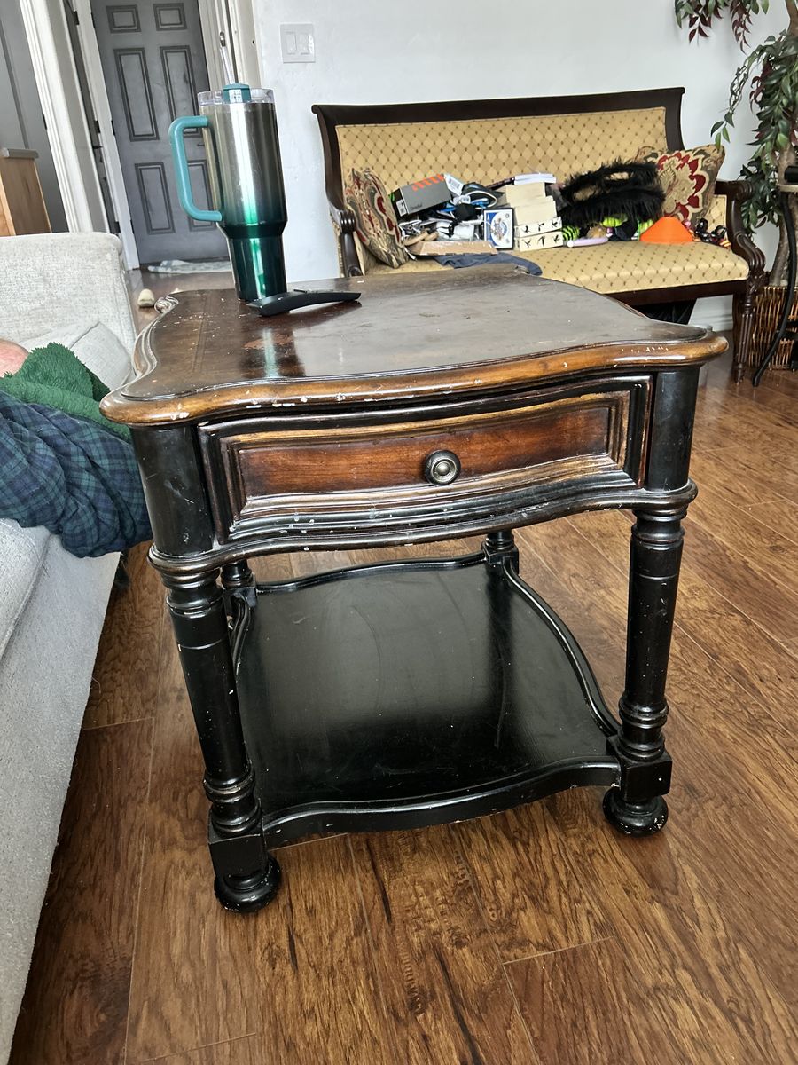 VenmoDark brown and black sofa table and end table. Few dings and some surface damage on end table. Drawers work. Heavy duty. Pick up only