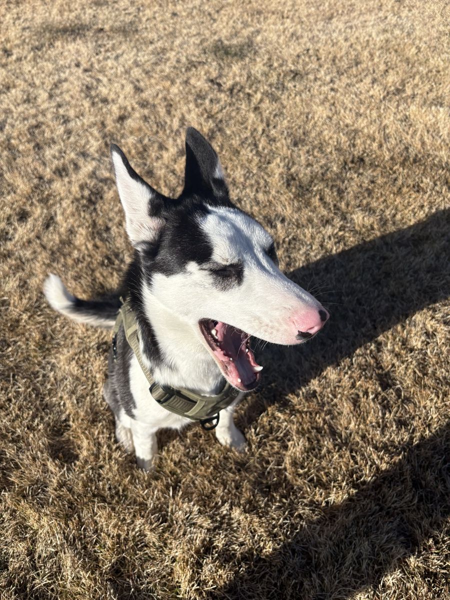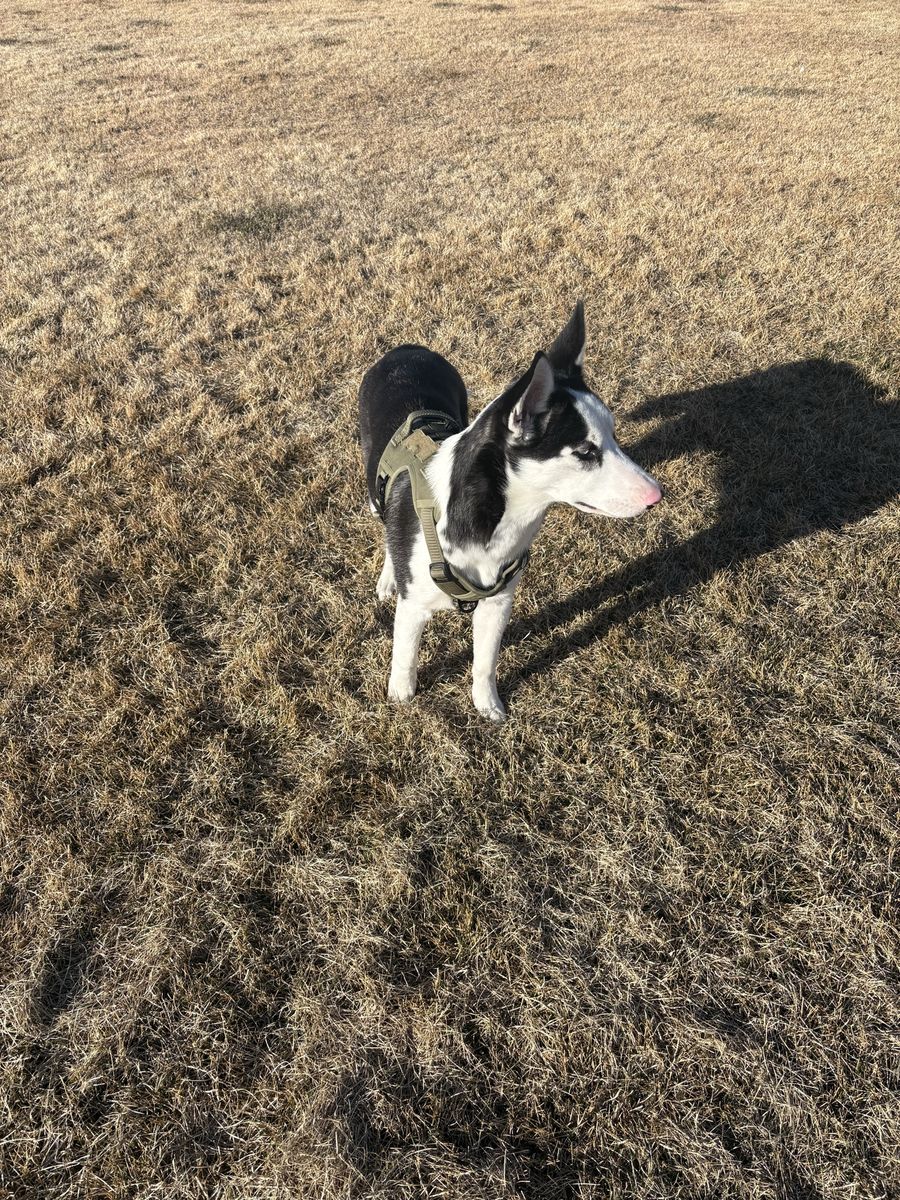 She’s really sweet and does good with kids, cats, and bigger dogs, but not small dogs. She just needs a little time to warm up at first. Once she’s comfortable, she’s very loving.