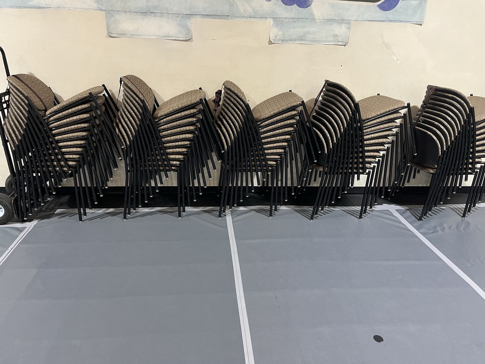 Venmo50 padded stacking chairs Very good condition, some have minor chipped plastic as seen in the pic. $15 each - minimum 10 or $500 for all. Located in Provo. Can deliver for a fee.