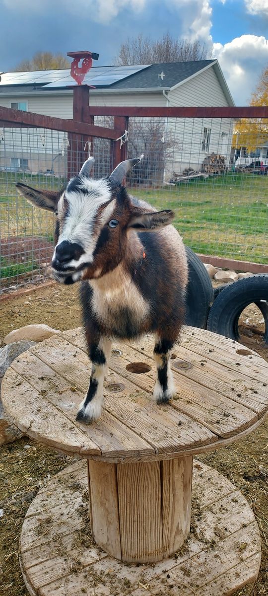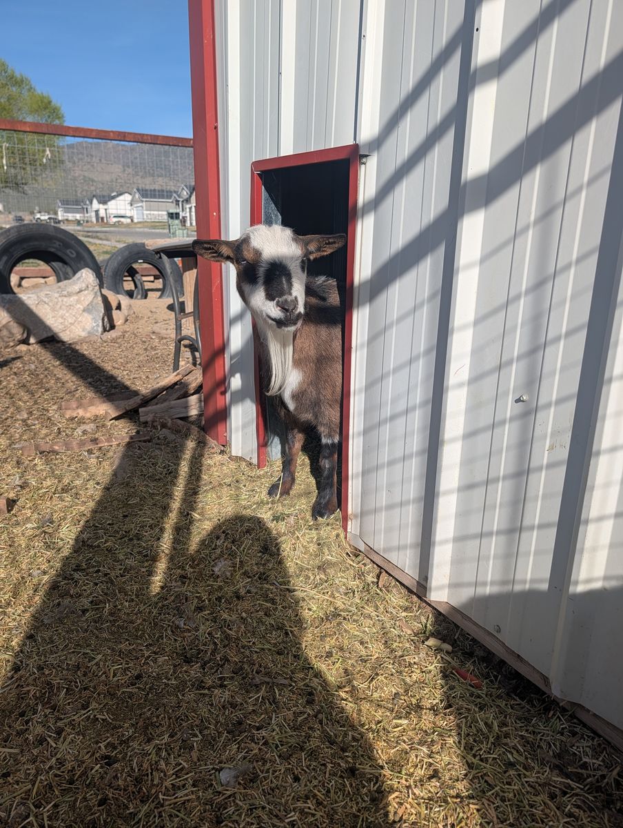 We are re-homing our two goats. They are Nigerian dwarf goats. Both are female and the one without horns is 3 years old and the goat with the horns is 1 1/2 years old. 50$ each.