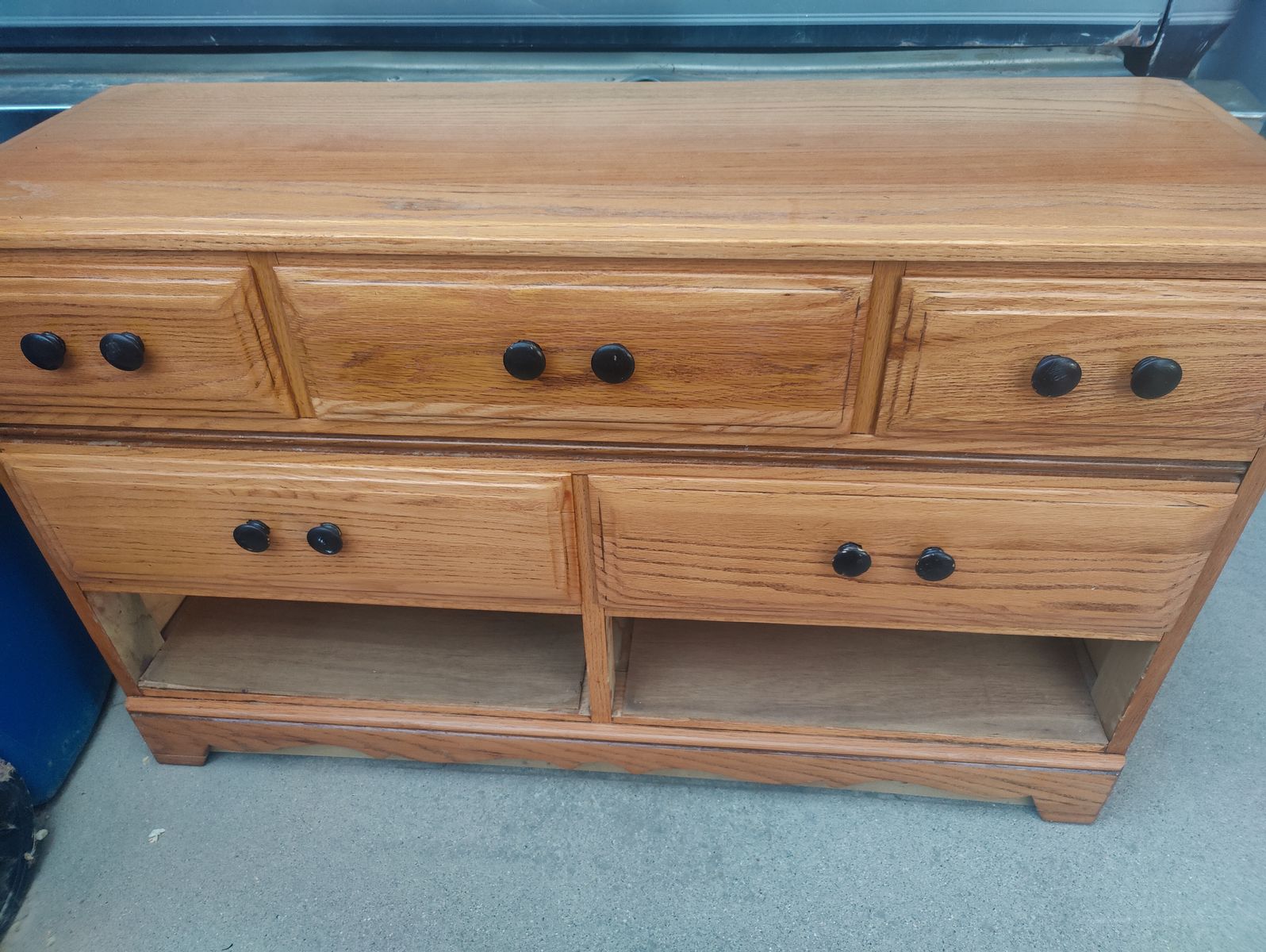 VenmoThis dresser has five usable, spacious drawers. It's also got a couple of open spots on the bottom you can put baskets in (or shoes). The drawers all slide nicely, and it's super sturdy.