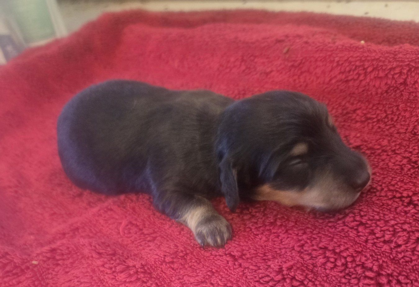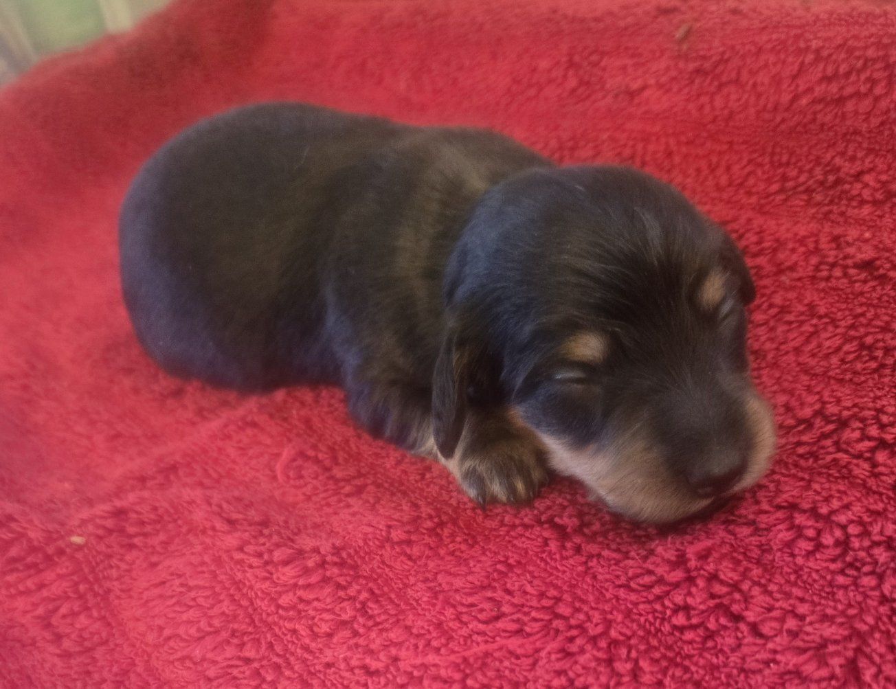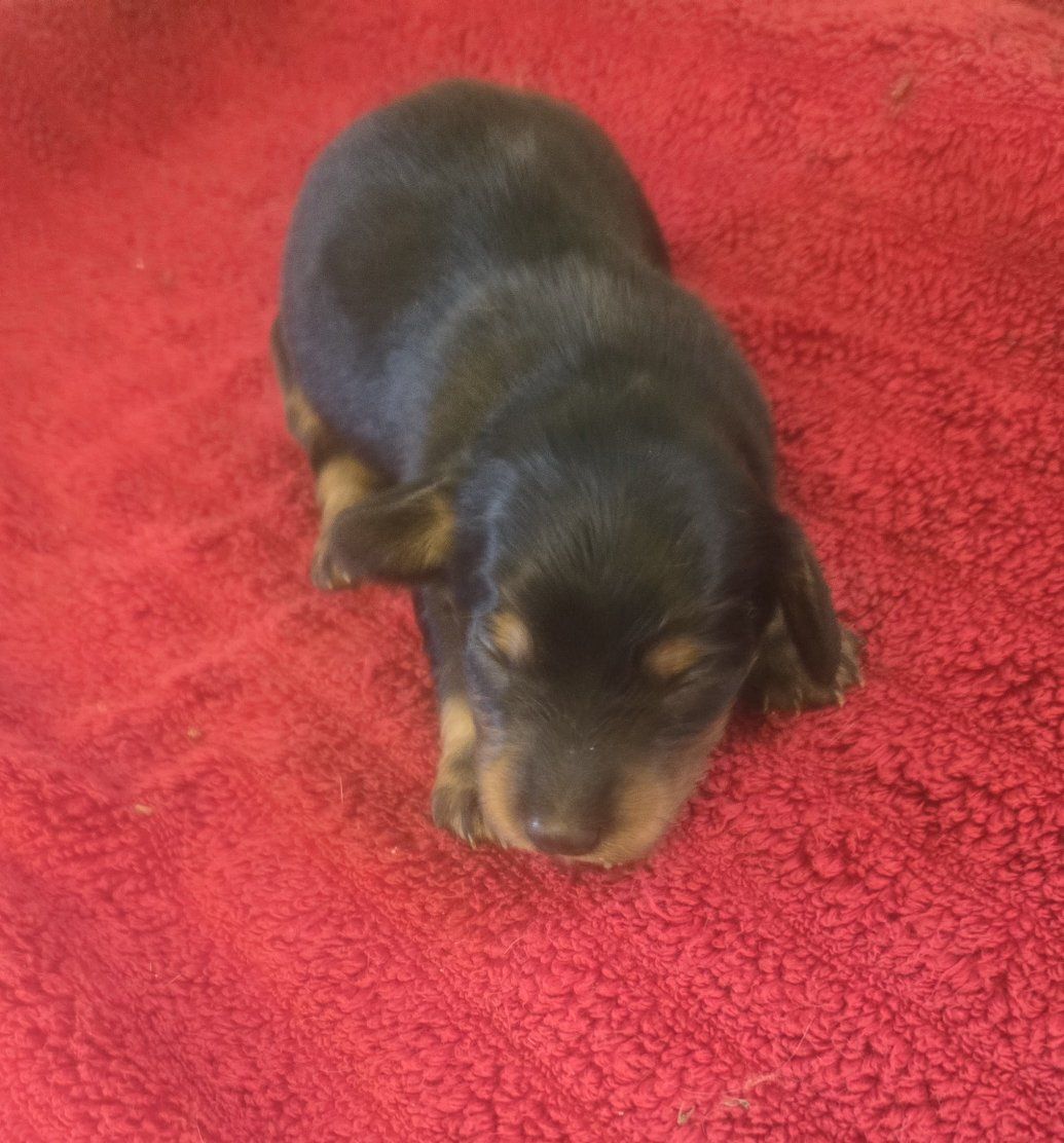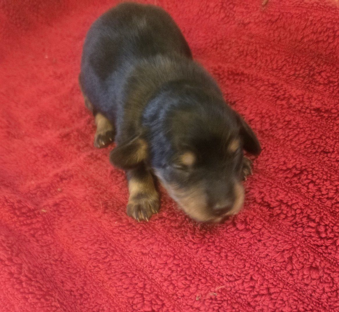 CashAppI have three longhair mini dachshund puppies. they are 1st a blk n tan tuxedo piebald longhair male. 2nd a blk n tan with a white strip down his chest longhair male. Last is a blk n tan female longhair puppy. shes got no white on her. they are 2 weeks old will be ready in 6 weeks and come with first shots and dewormed according to their age. they range in price a little the tuxedo piebald male is 1550$ the other 2 are 1450$. please serious inquiries only