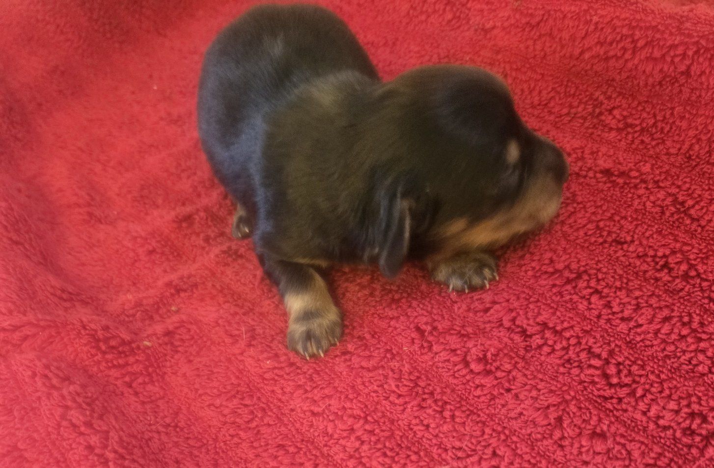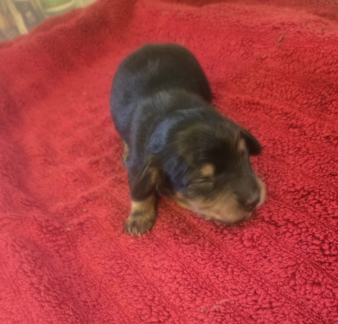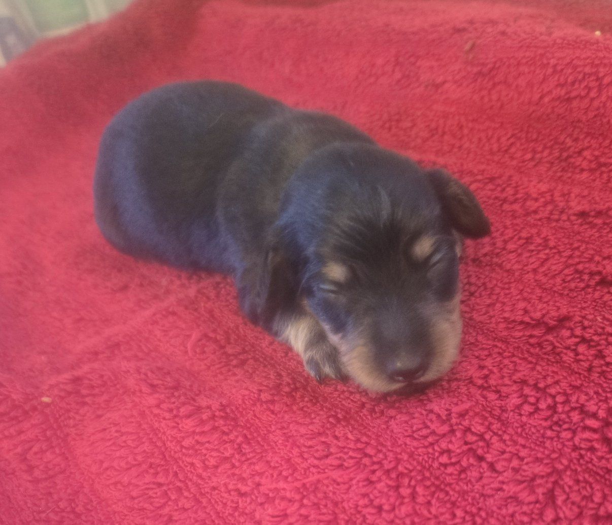 CashAppI have three longhair mini dachshund puppies. they are 1st a blk n tan tuxedo piebald longhair male. 2nd a blk n tan with a white strip down his chest longhair male. Last is a blk n tan female longhair puppy. shes got no white on her. they are 2 weeks old will be ready in 6 weeks and come with first shots and dewormed according to their age. they range in price a little the tuxedo piebald male is 1550$ the other 2 are 1450$. please serious inquiries only