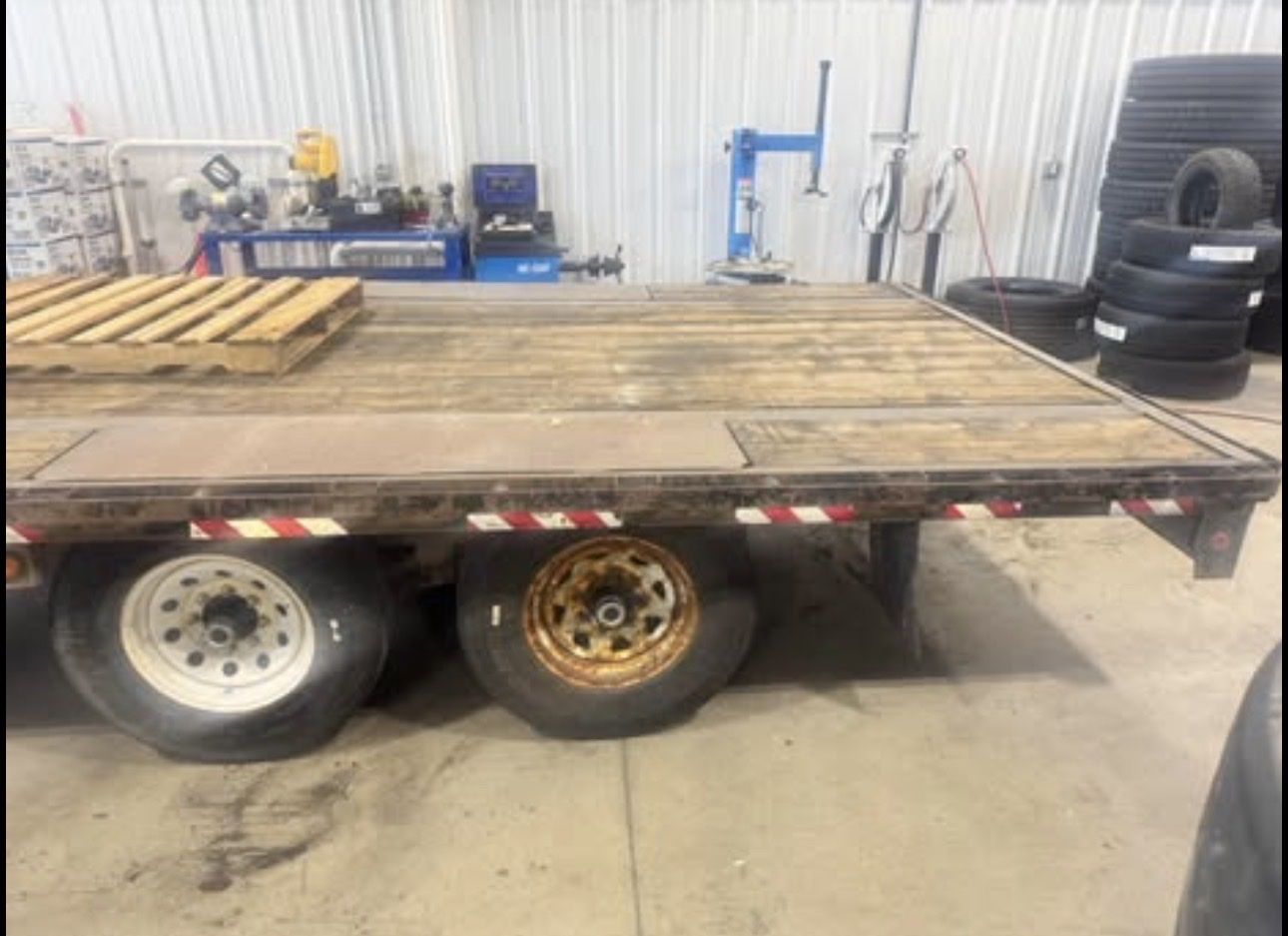 This is a work trailer, not a brand new show piece — but it’s solid and does exactly what it’s supposed to do. Perfect for hauling equipment, materials, or daily job use. Recently had a spindle, new rocker boxes, spring eye bushings replaced. Come check it out. Any questions, shoot me a message.