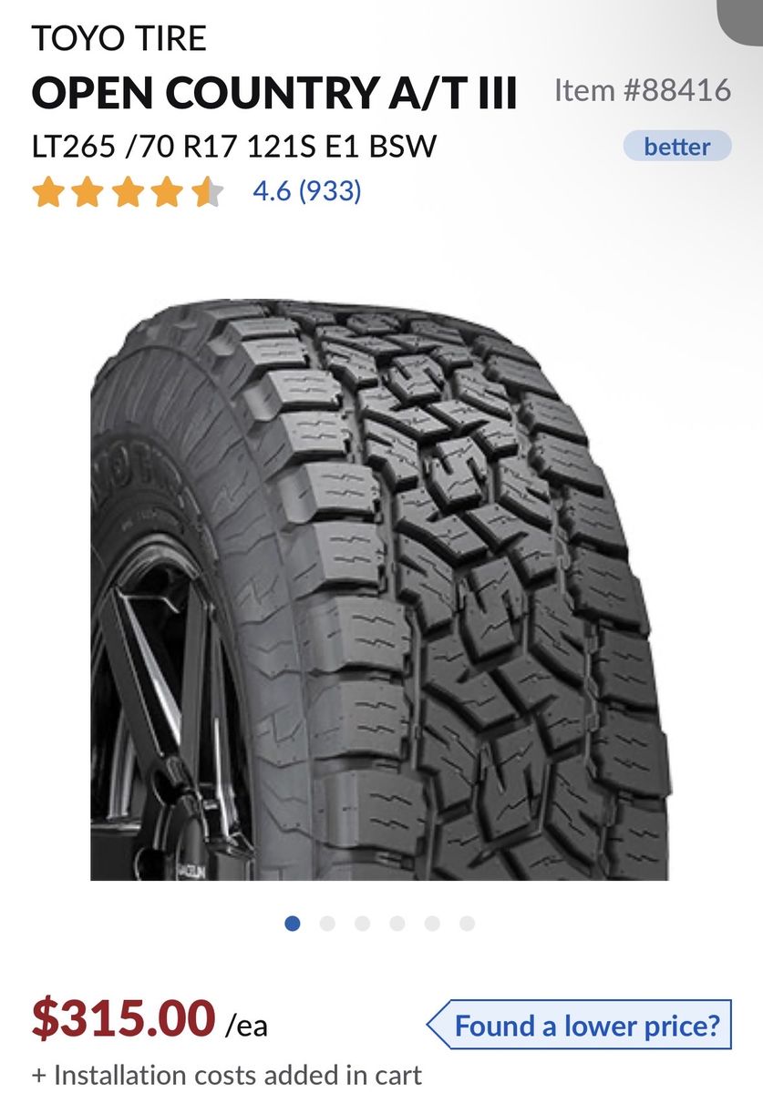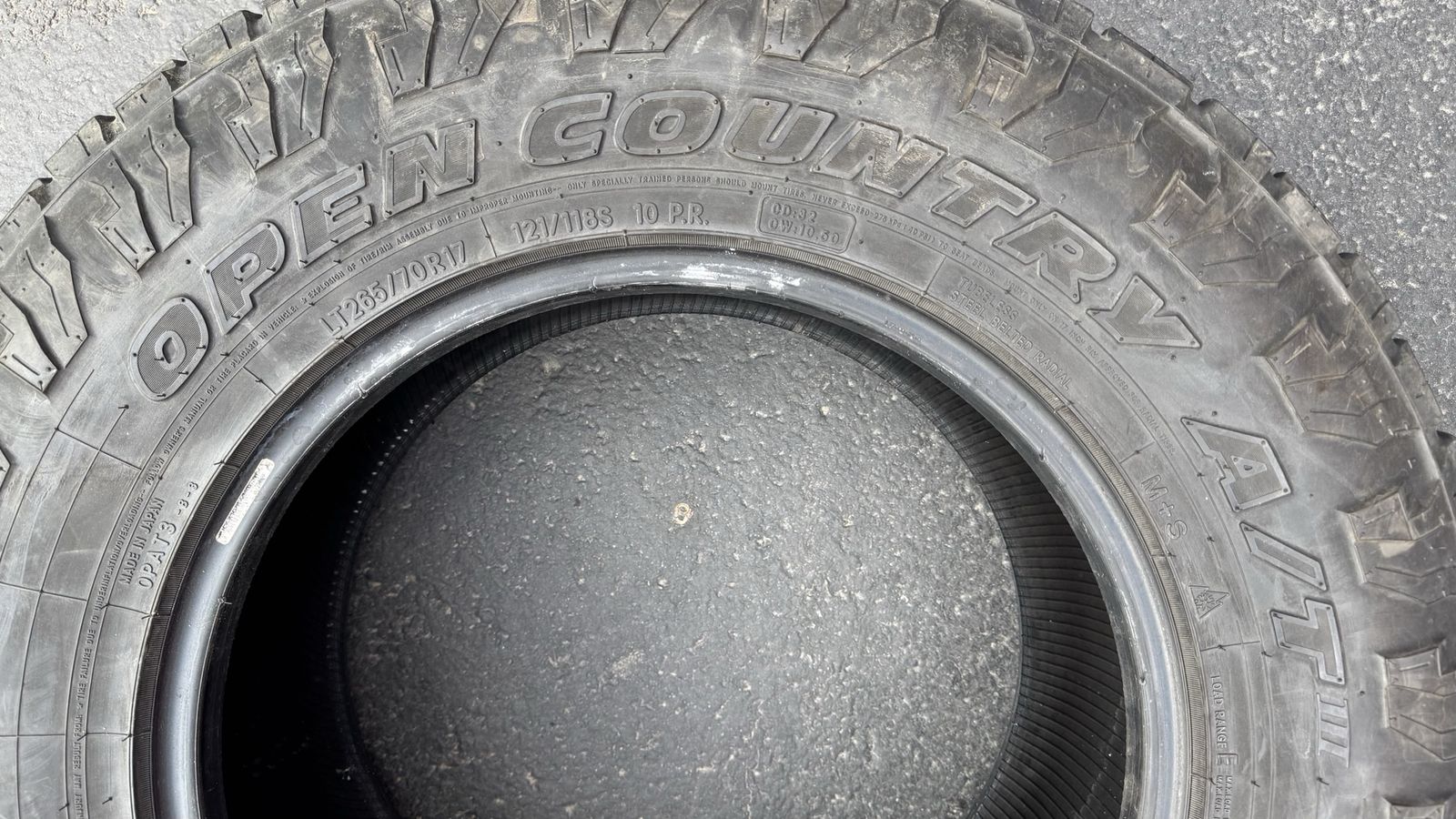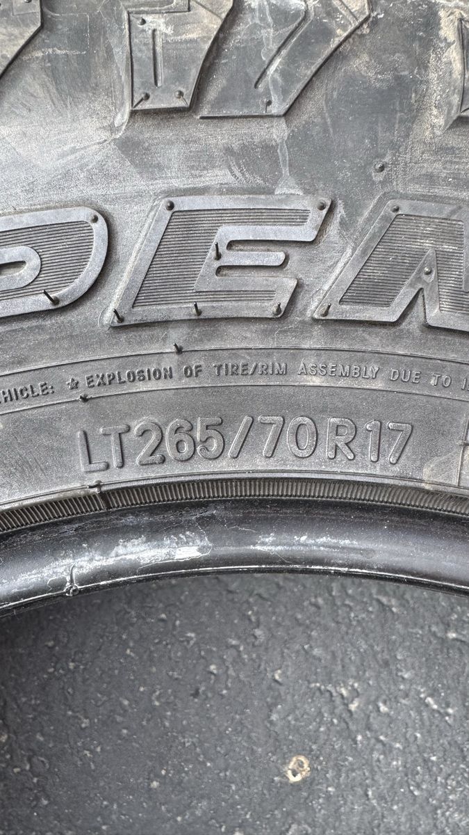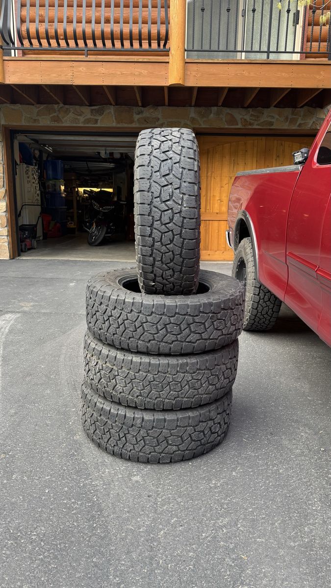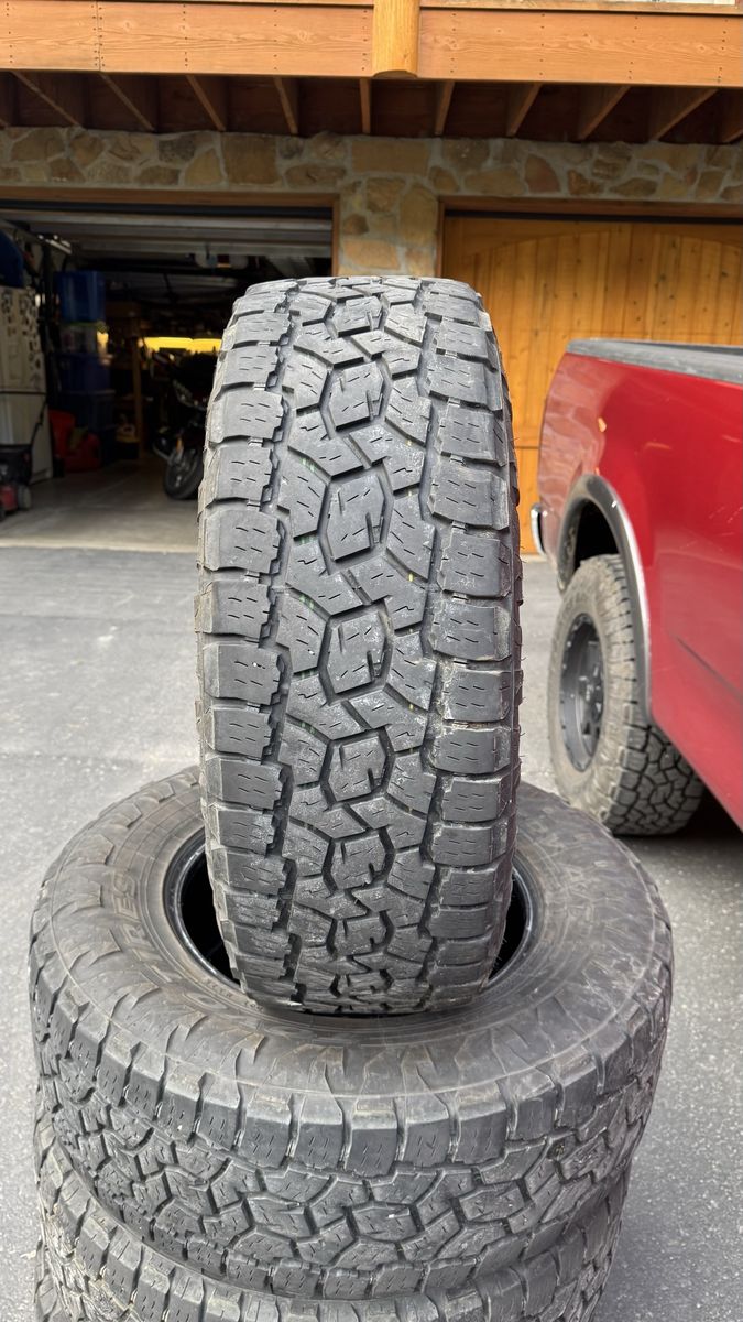 VenmoStill lots of good life (tread) left in these tires. Only reason I took them off my truck is to get bigger ones. I had them rotated every 6,000 miles so the wear is even. They’re 265/70/R17. Over $300 a piece brand new! Let me know if you have any questions.