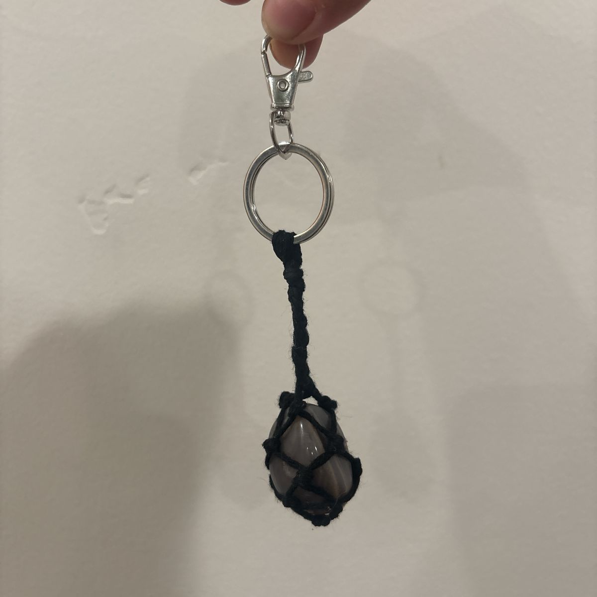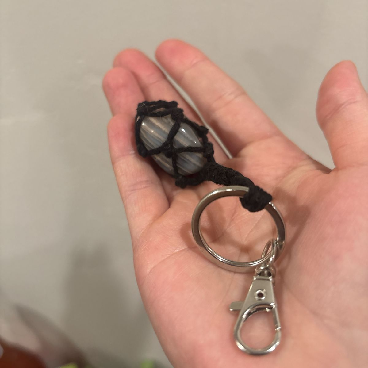 ApplePayThe gem is a kind of agate, not sure what exact type. The jump ring has a clip on it