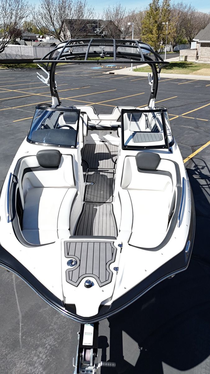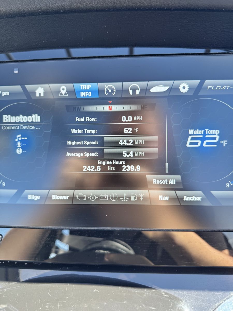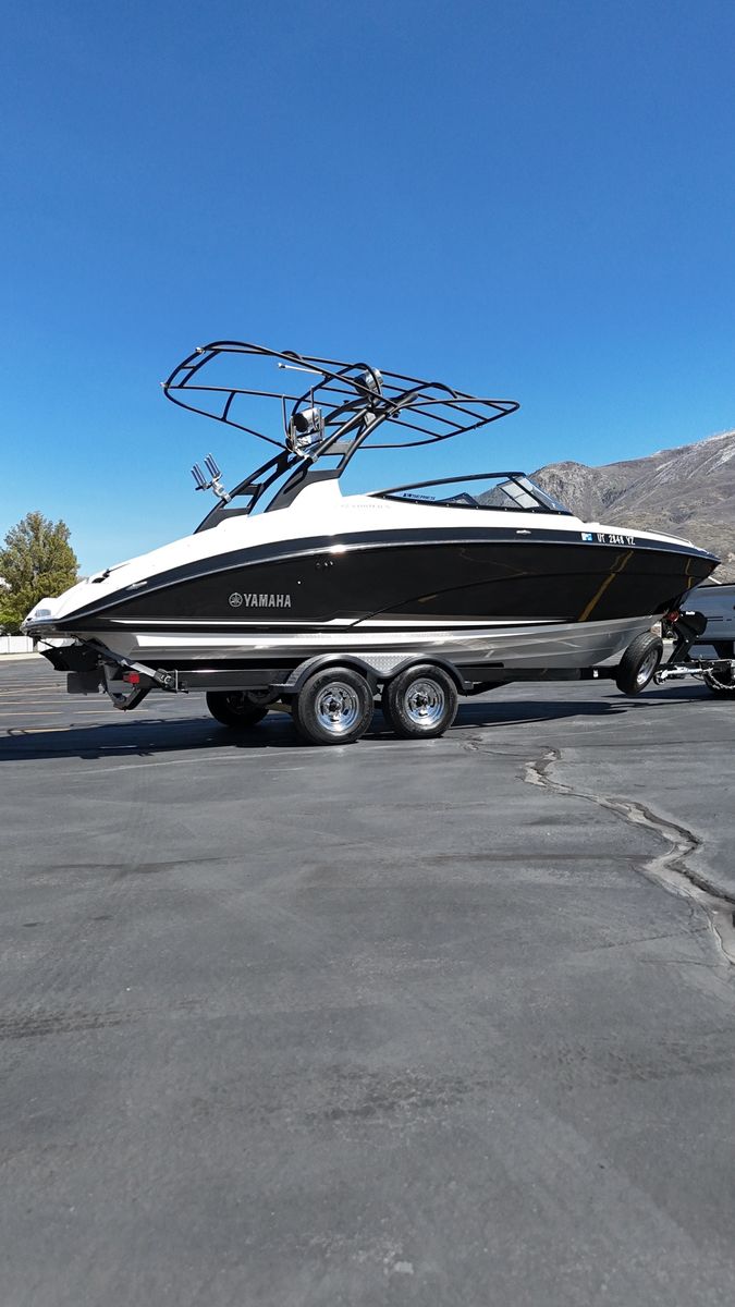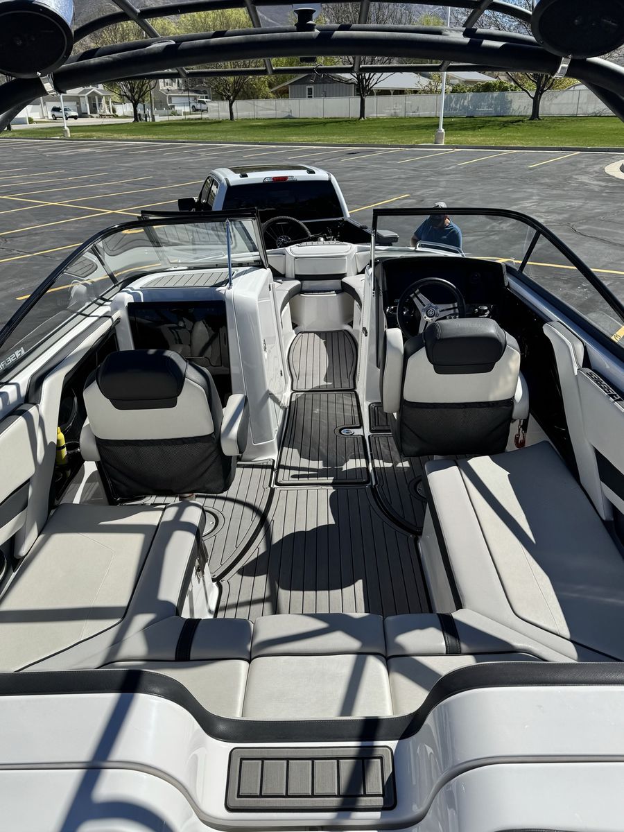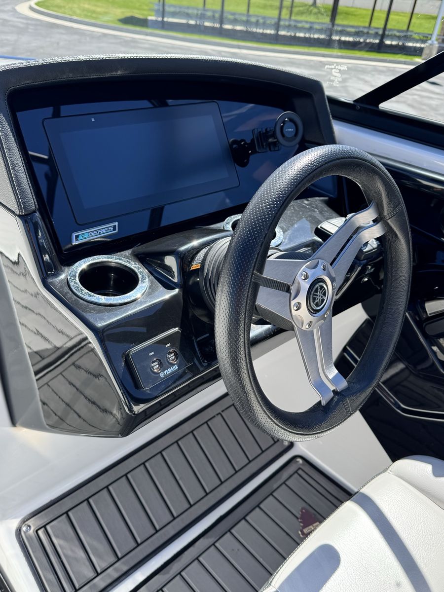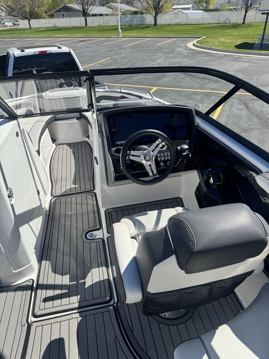 This boat has been a great family boat, plenty of room to fit up to 12 riders. It’s equipped with two Twin 1.8L High Output Yamaha Marine engines. E-Series Technology: Features throttle-by-wire for single-lever operation, RPM sync, and push-button start. Connext System: 12-inch touchscreen display with GPS-enabled charting. Design & Comfort: Features include teak-style marine mats, bow filler inserts, a removable pedestal table, and a portside entertainment area. Tower & Bimini: Forward-swept tower with an extended Bimini top that includes an integrated solar panel for battery charging. Stern Area: Features a signature stern seating area with cushioned backrests, underwater LED lights. Length: 24 feet Beam: 8 feet 6 inches Weight: ~3,700 - 3,900 lbs Draft: 19 inches Fuel Capacity: 50 Call or text with any question’s.