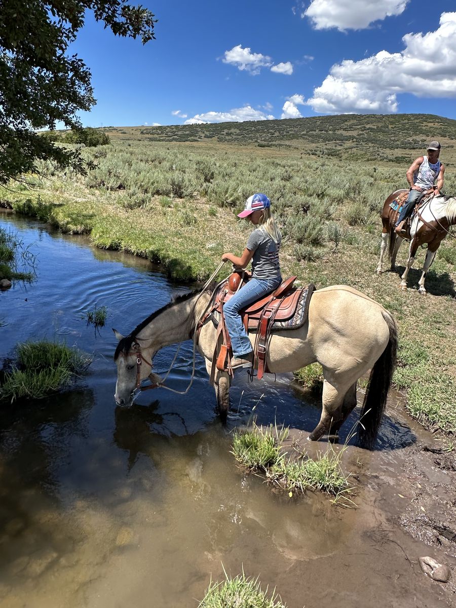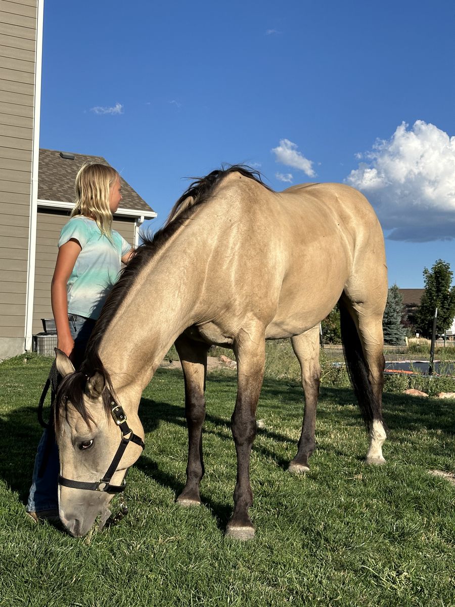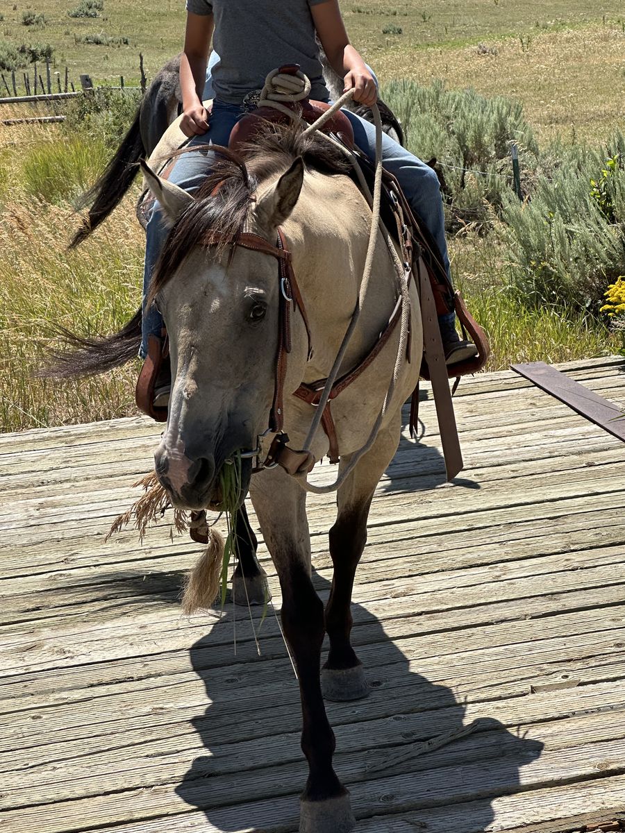 VenmoMaverick is an amazing 2008 Buckskin gelding. He has been a fantastic horse that we trust with anyone on his back. The smoothest trail horse I’ve ever had with a long stride and covers ground quickly. He’s been hunting and trail riding a lot. will cross any water or step over logs. His rider has been my daughter who started on him when she was 11. He’s ran poles, barrels and has been a head horse for the last 2 years. He’s been hauled to jackpots and we have won money on him from the 10.5 down to the 3 and 4 where my daughter mostly ropes on him. Strong face and won’t get outrun ever. I have more rope videos but this site will only allow one to upload. He’s been off roping this whole year so if someone is looking for a rope horse, I’d run a few pens on him before you haul him. Maverick won a trail competition the first time we entered him in one. I think he’d be a great 4-h horse as you can even ride him bareback. He is a pretty fancy trained horse. He knows how to spin, collect, and side pass. My daughter has even jumped on him as well. He requires no maintenance. 15.1 hands and weighs 1200lbs. Anyone can ride him, he’s a great horse worth the price.