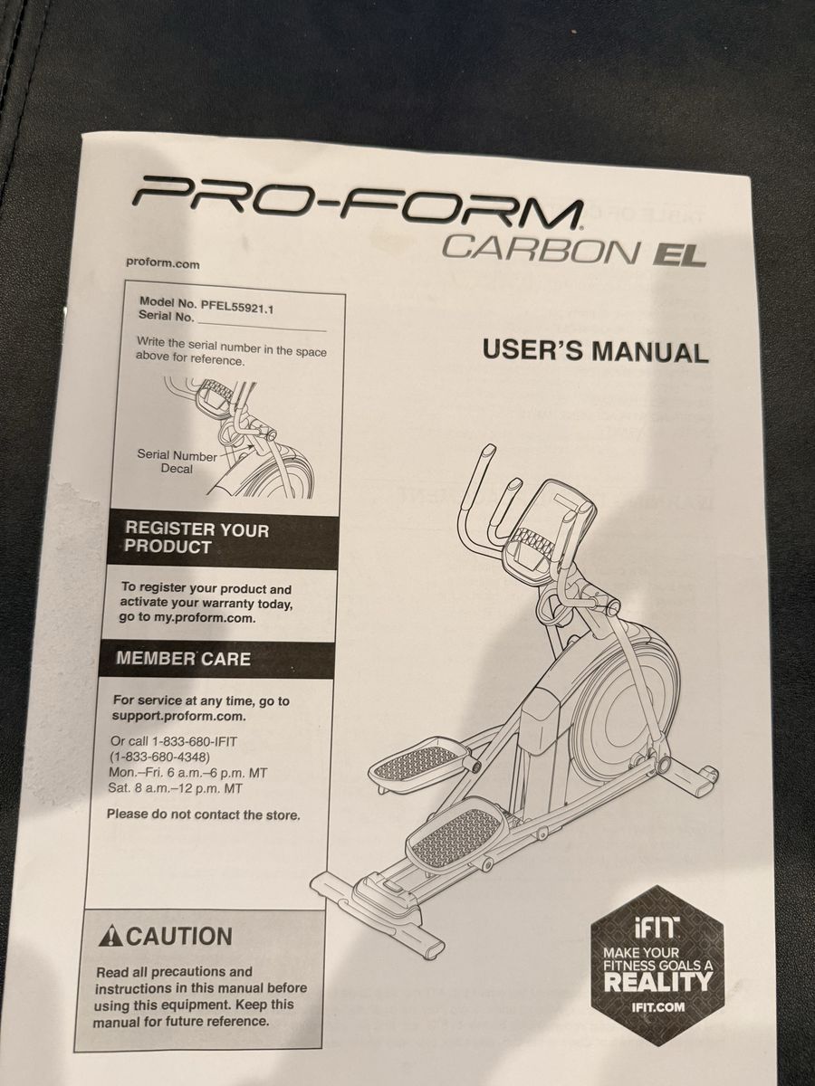 Clean Pro-Form Carbon EL elliptical. Has Intensity Stride Ramp. Great for getting those workouts in at home. Pick up only.