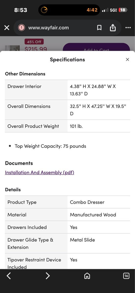 About This Product TH10157 This storage piece—with three drawers on one side and two baskets on the other—will meet all your needs: clothes, toys, sheets, etc. The baskets make it easy to move their contents from room to room. A chest with a timeless look In a more traditional style, this cute chest will last you through the years without looking out of date. The attractive little round knobs and the texture of the baskets make this a unique, elegant piece. A handy shelf The top surface is large enough to hold all those personal things you like to keep within reach in your kid’s room. The height is ideal for letting your kids have easy access. 5-year limited guarantee on furniture, 30-day satisfaction guarantee on accessories Behind this 3-drawer dresser with storage baskets with an exclusive 5-year limited guarantee on furniture and a 30-day satisfaction guarantee on accessories. Shop with confidence knowing your purchase is always covered. All our products meet or exceed North American safety standards and our packaging is tested and certified to reduce the risk of damage during shipment. A wall anchor kit is included in the box to prevent tip-over incidents, thus ensuring your family's safety. This item is shipped in 1 box, make sure to have a friend with you. Assembly is required by 2 adults and tools are not included. This product is made in North America with laminated particleboard and MDF. Basket included, other accessories not included
