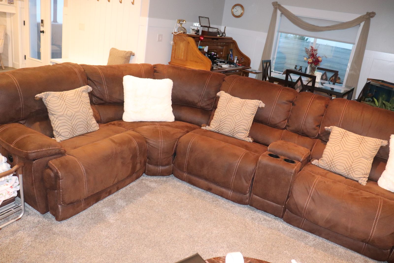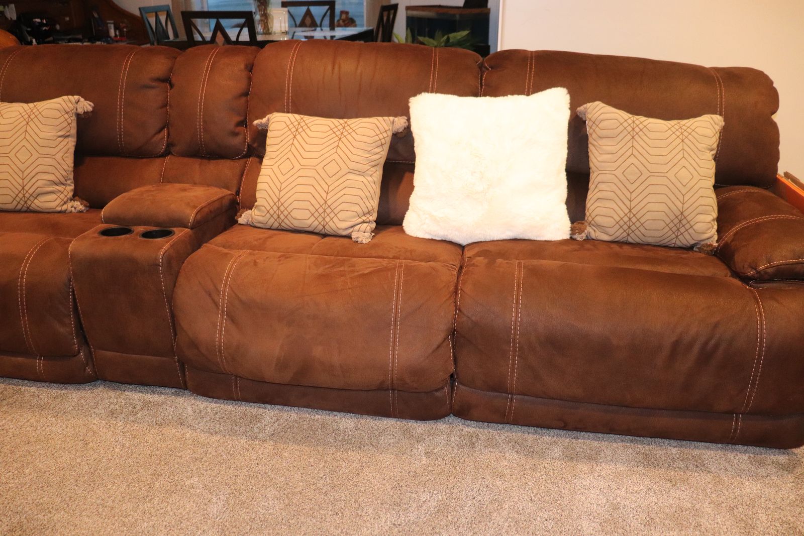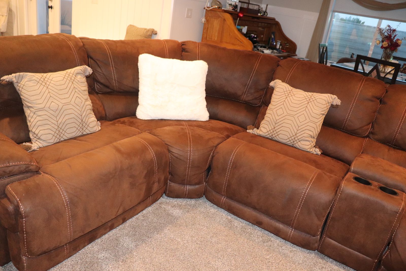 ApplePaySelling a beautiful chocolate brown curved sectional couch that brings both comfort and flexibility to a living space — perfect along a wall or as a centerpiece to break up a larger room.