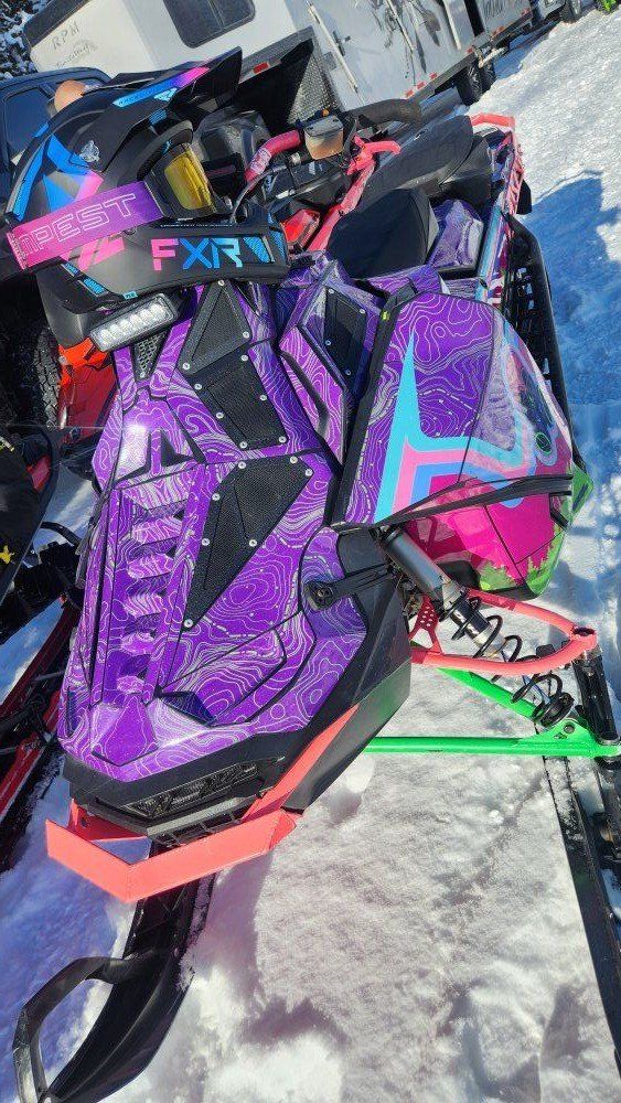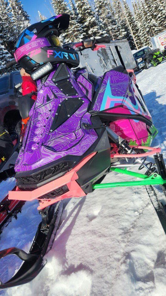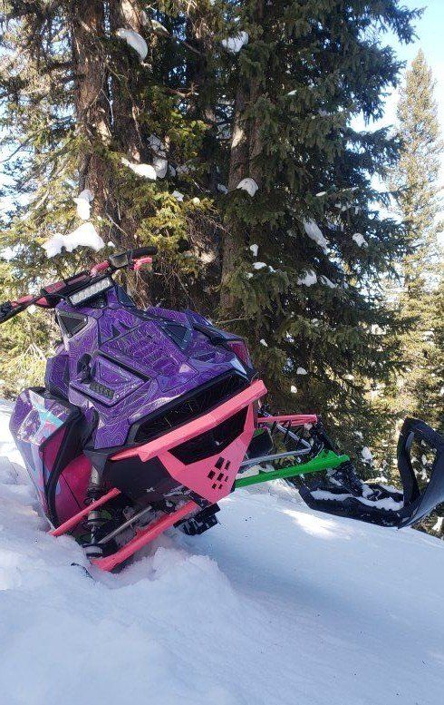 Parts List: -Silber Turbo 3lb spring -Custom clutching to go with the turbo -Voyager Pro Trail Tech (Track your buddies in real time, see where you've been, mark way points and more) -Finger Throttle with hand guard -Adjustable Brake lever -Skinz Helium Hood -Skinz Running boards (less snow build up and better foot traction) -Steering post relocate kit (better center of gravity) -Custom wrap -Aftermarket bumpers front and rear (rear bumpers a little bent after towing another sled off the mountain) -Cheetah Factory handlebars