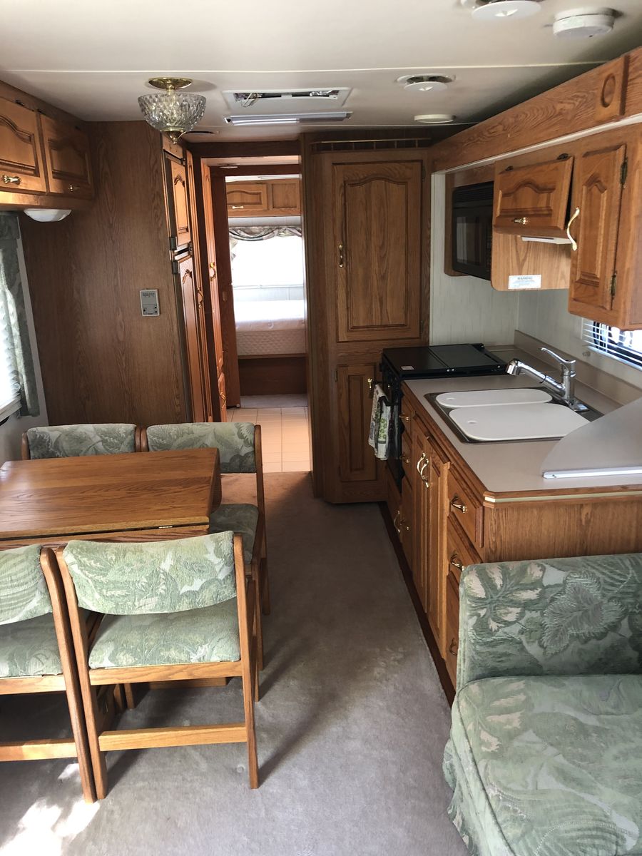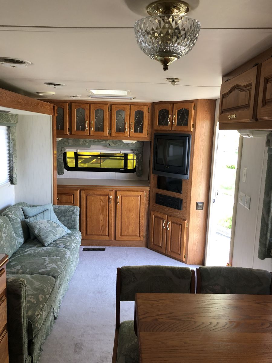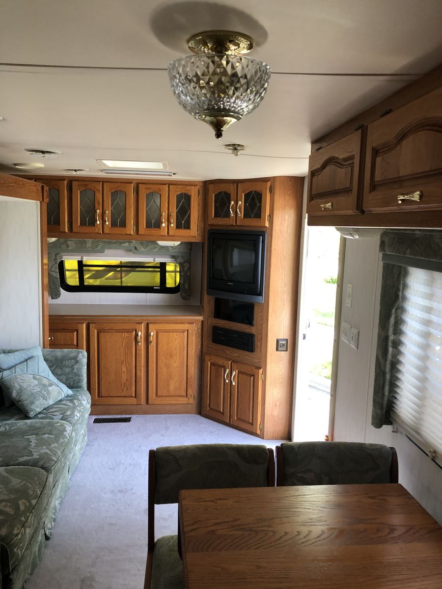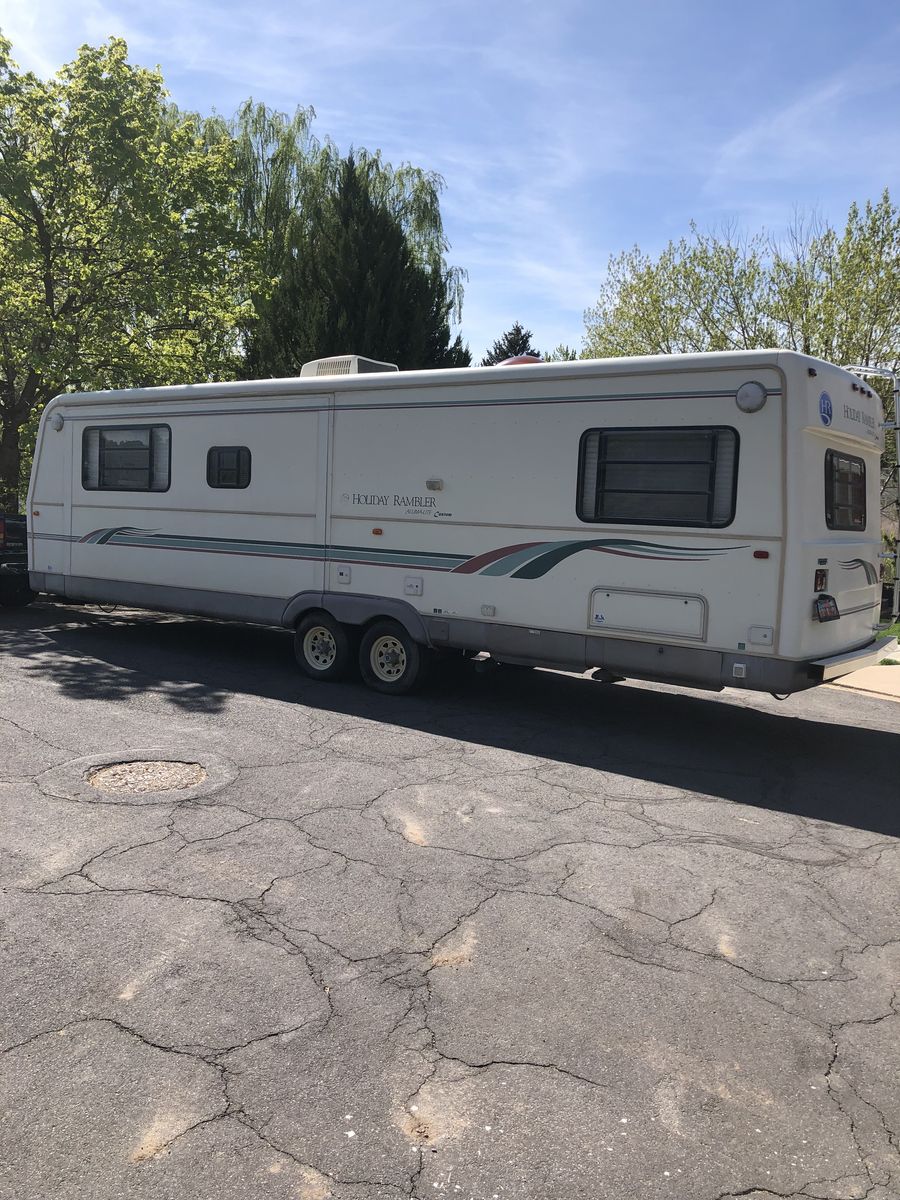 For sale by owner beautiful 1997 Holiday Rambler Aluma-Lite 33 foot camping trailer with a 12 foot slide out. Excellent condition. Everything works. Top of the line travel trailer with it's fiberglass body and aluminum frame. Beautiful colors with solid oak cabinetry throughout. Real tile in bathroom. There's an extra long mattress in the master bedroom. Build in washer and dryer. Two entrance doors. Heavy duty hitch and sway bars included, along with all power cords, hoses, and all accessory equipment needed for a great travel/camping experience.