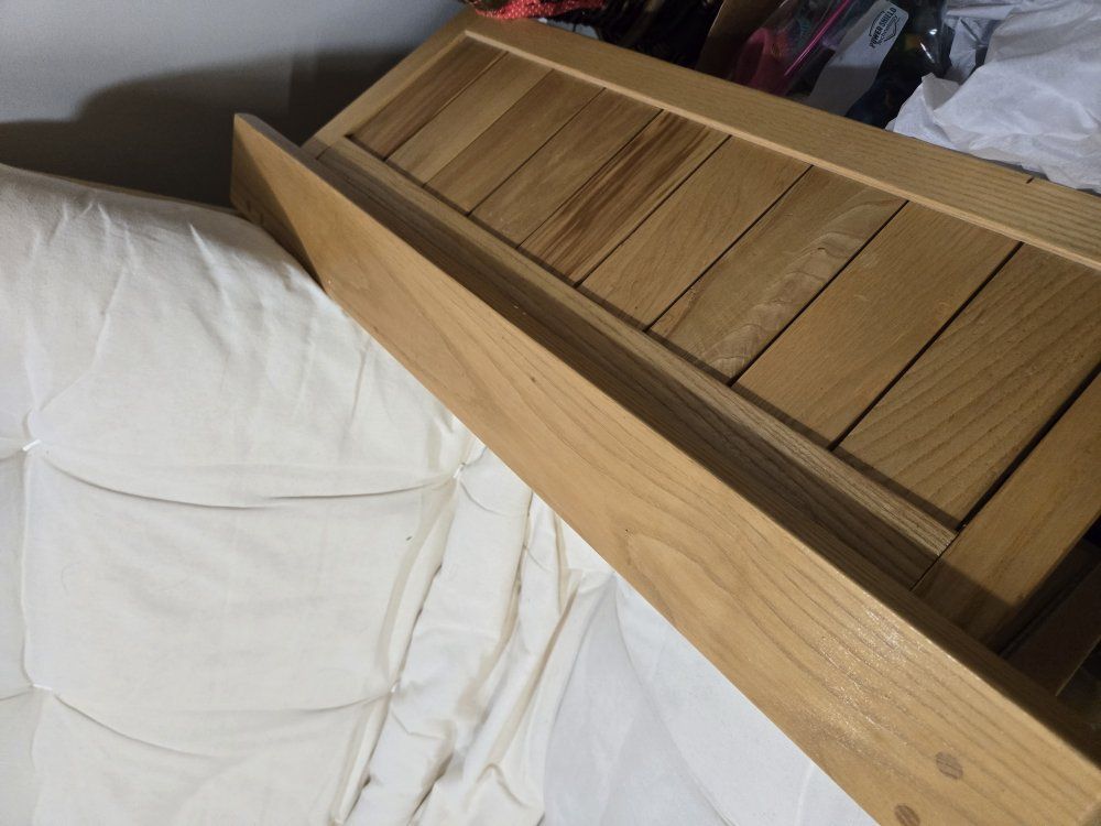 PayPalVery nice condition. Wood frame with arm rests that flip up. 44 inch wide or 62 inch with arm rests up.