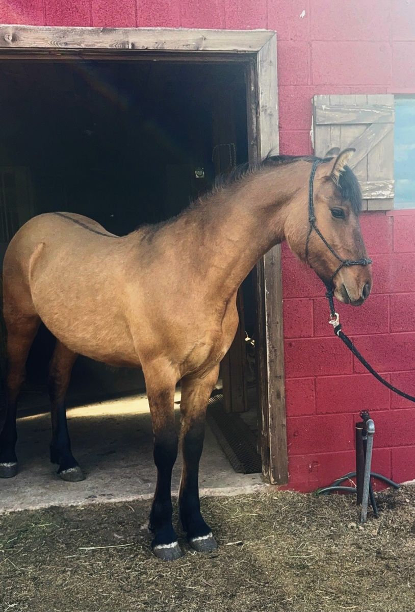 VenmoWe're excited to announce this beautiful 2025 Moriesian colt is available. Bro Zion is Dun by (Aitse R.V. Ster x Sassy Dun Sue) is 50/50 Friesian and Morgan Horse. Sire is 16.3h and Dam is 15.2h. This boy has already had alot done with him. We've worked on desensitizing, manners on the ground, feet trims, and hauling in the trailer. These horses are known for there personality, grace and athletic ability in many different disiplines. You could have this guy try anything and he'll look beautiful doing it. They are smart, funny and willing to learn. They just want to be with you and whatever you're doing. Give me a call or text if interested.