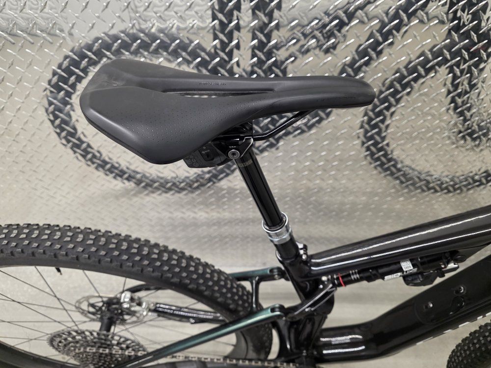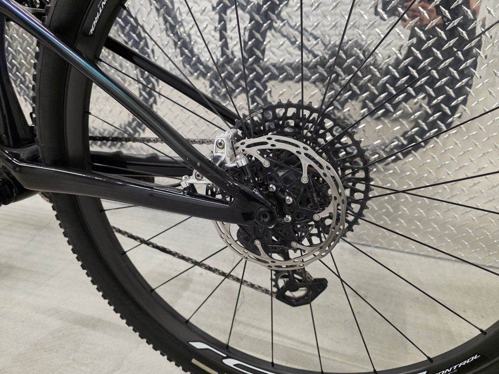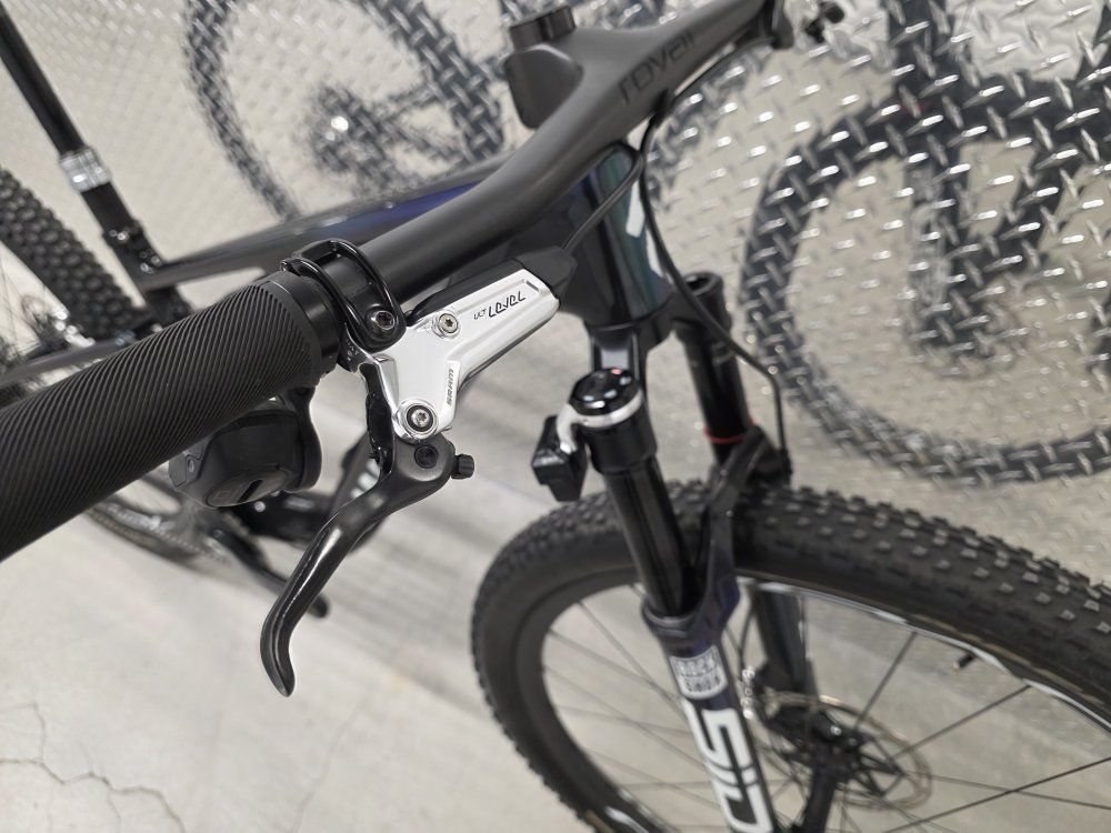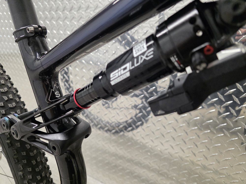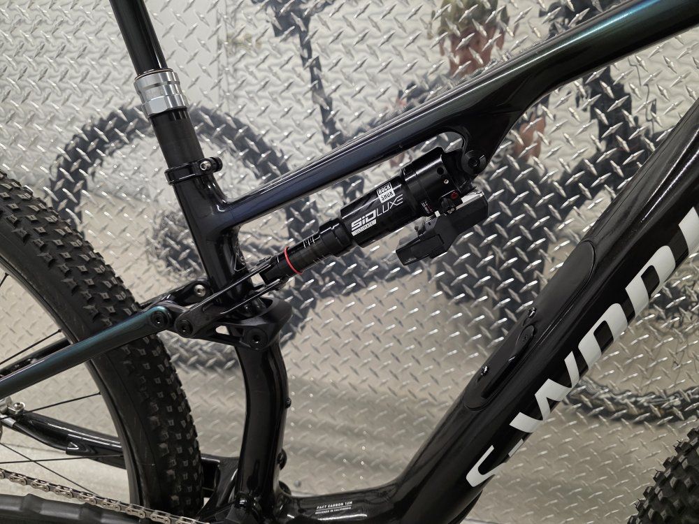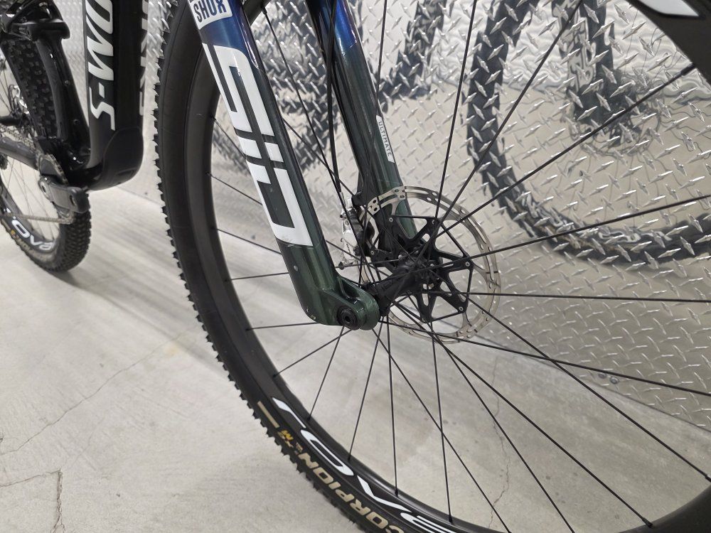Rockshox Sid Ult Flight Attendant 120mm fork Rockshox SidLuxe Flight Attendant 120mm shock Rockshox Reverb axs dropper post Sram XX SL powermeter Sram XXSL Transmission drivetrain Sram Level Ult brakes Roval Control SL carbon wheels Dt Swiss 180 hubs w/ ceramic bearings Roval Control carbon cockpit