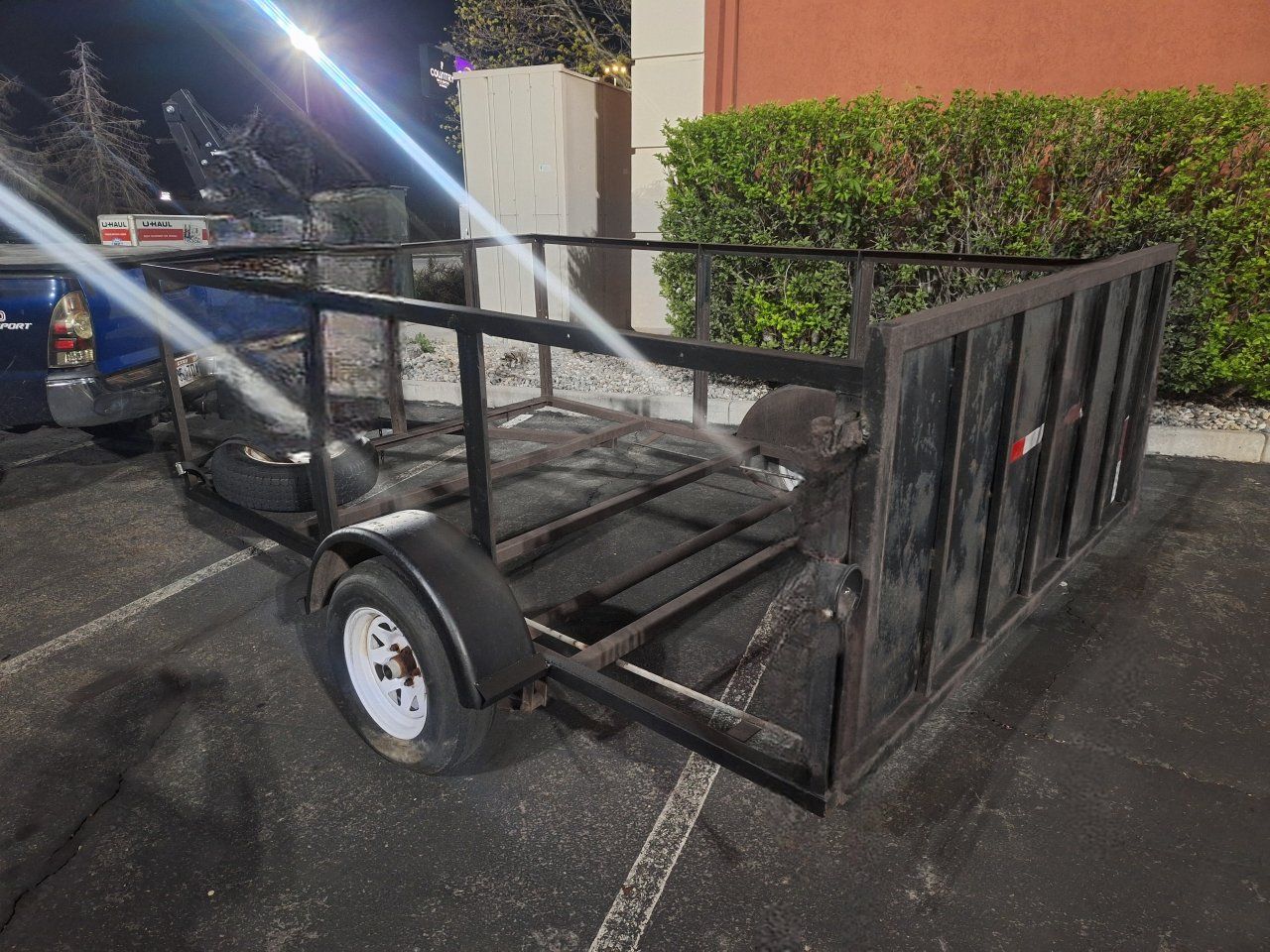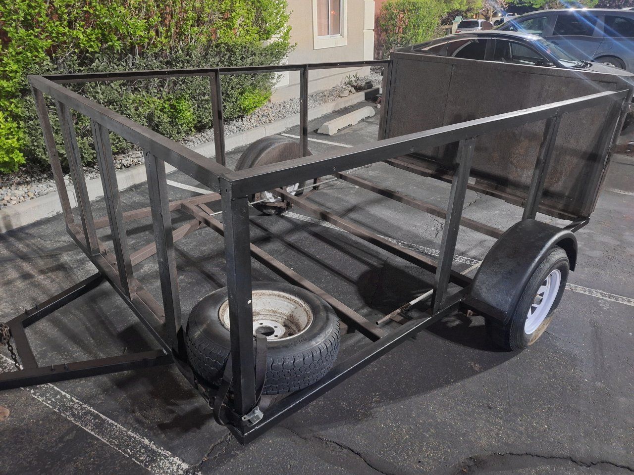 7' x 10' deck, 3' walls, rear gate/ramp, 3500 lb. axle, fresh packed bearings, brand new tires, brand new wiring in conduit, tongue jack. I will be adding the new deck on it within the next couple days, at that point with the deck on it the price will increase significantly. This is an awesome trailer, it is perfect sized and it's fairly heavy duty, and at the same time it's well balanced, fairly light enough that it is easy to tow, it tows excellent.