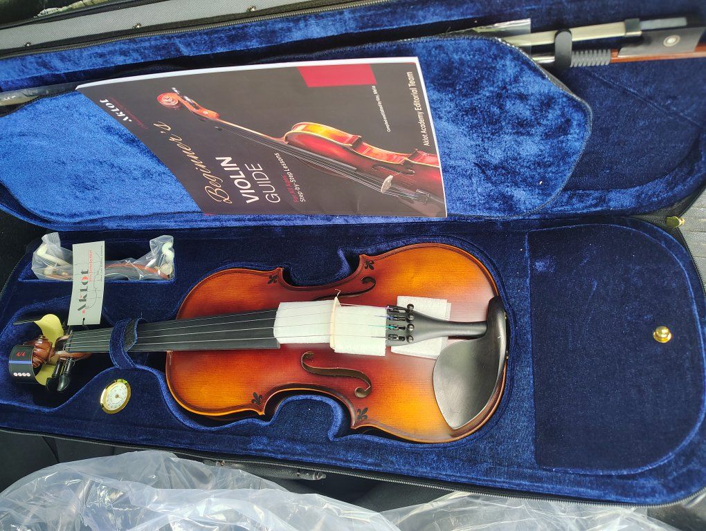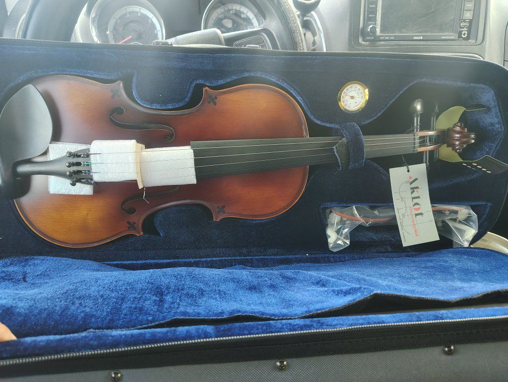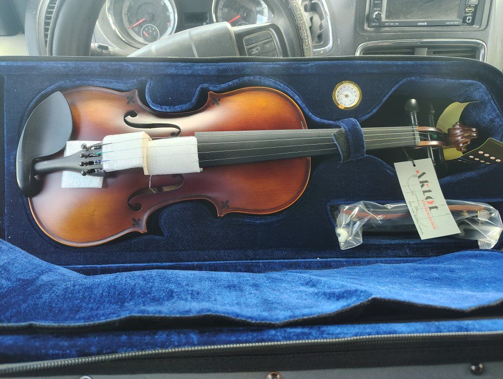 Up for sale a brand new ! AKLOT Handcrafted Full Size Violin full size ..Solid Wood Matte Fiddle, Acoustic Beginner full size Violin Kit with Hard Case, Lesson Book, Bow, Shoulder Rest, Extra Strings, Tuner, Fretboard Stickers (VRT-AmiCS) .... Never used ... see 2plz Call or text 8019704431 thanks!