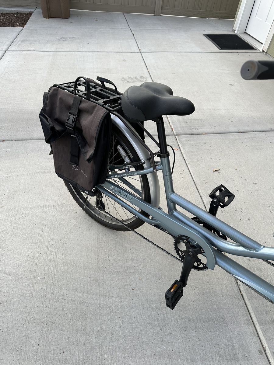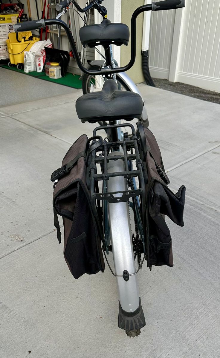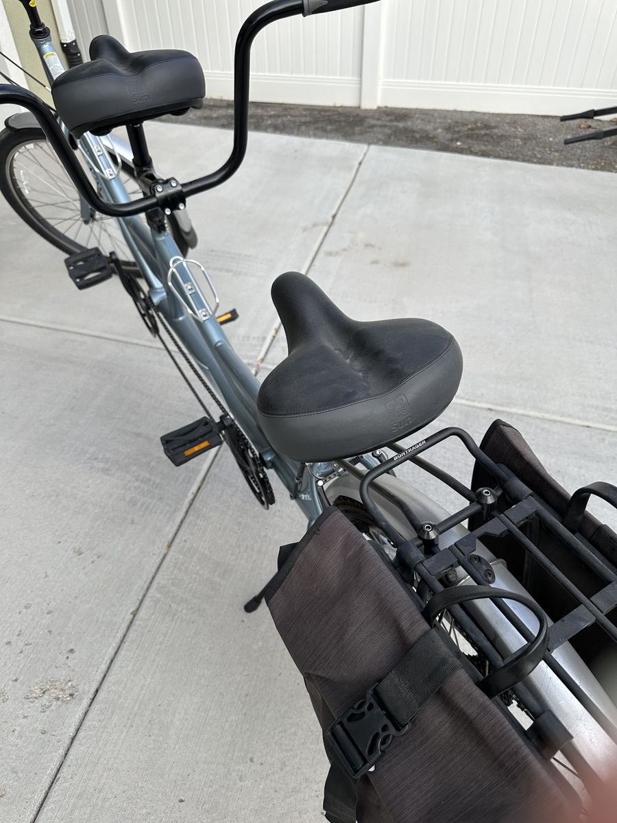 Bicknell 7-speed tandem bike purchased Dec. 2020 for $1188. Lots of upgrades, including comfy seats, (2) fold-out gear bags, water bottle holders, tube protector liners