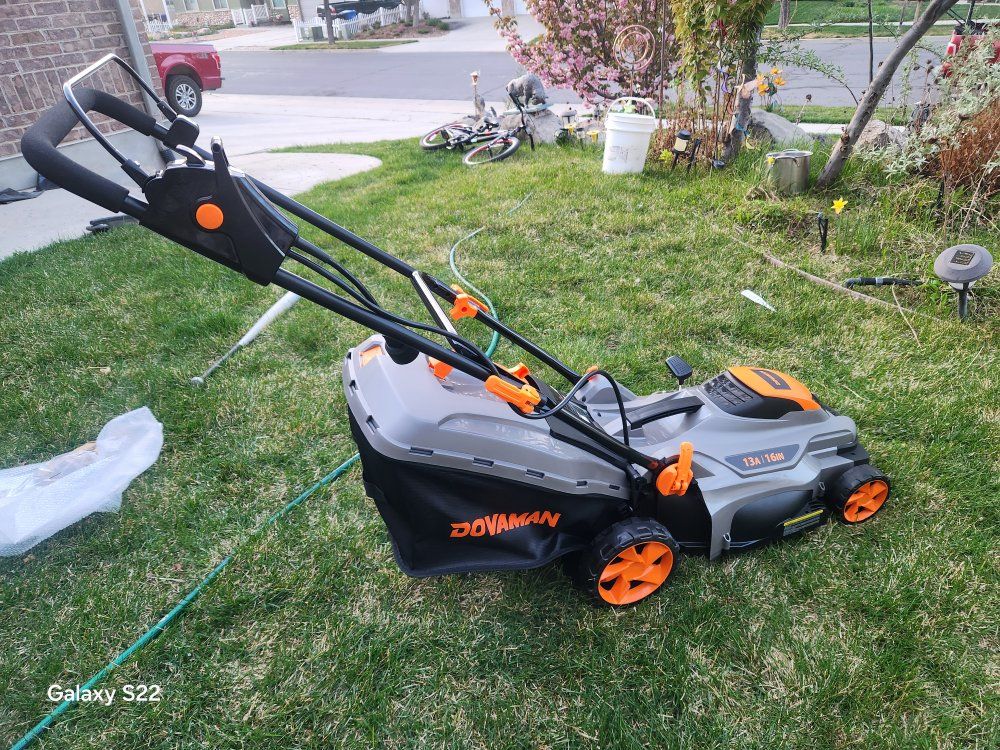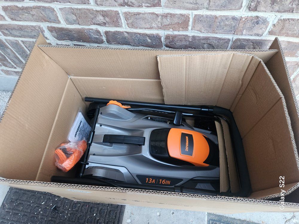 brand new. corded electric lawnmower this lawnmower is not Self-propelled easy to push it never has been used ideal for small yard.