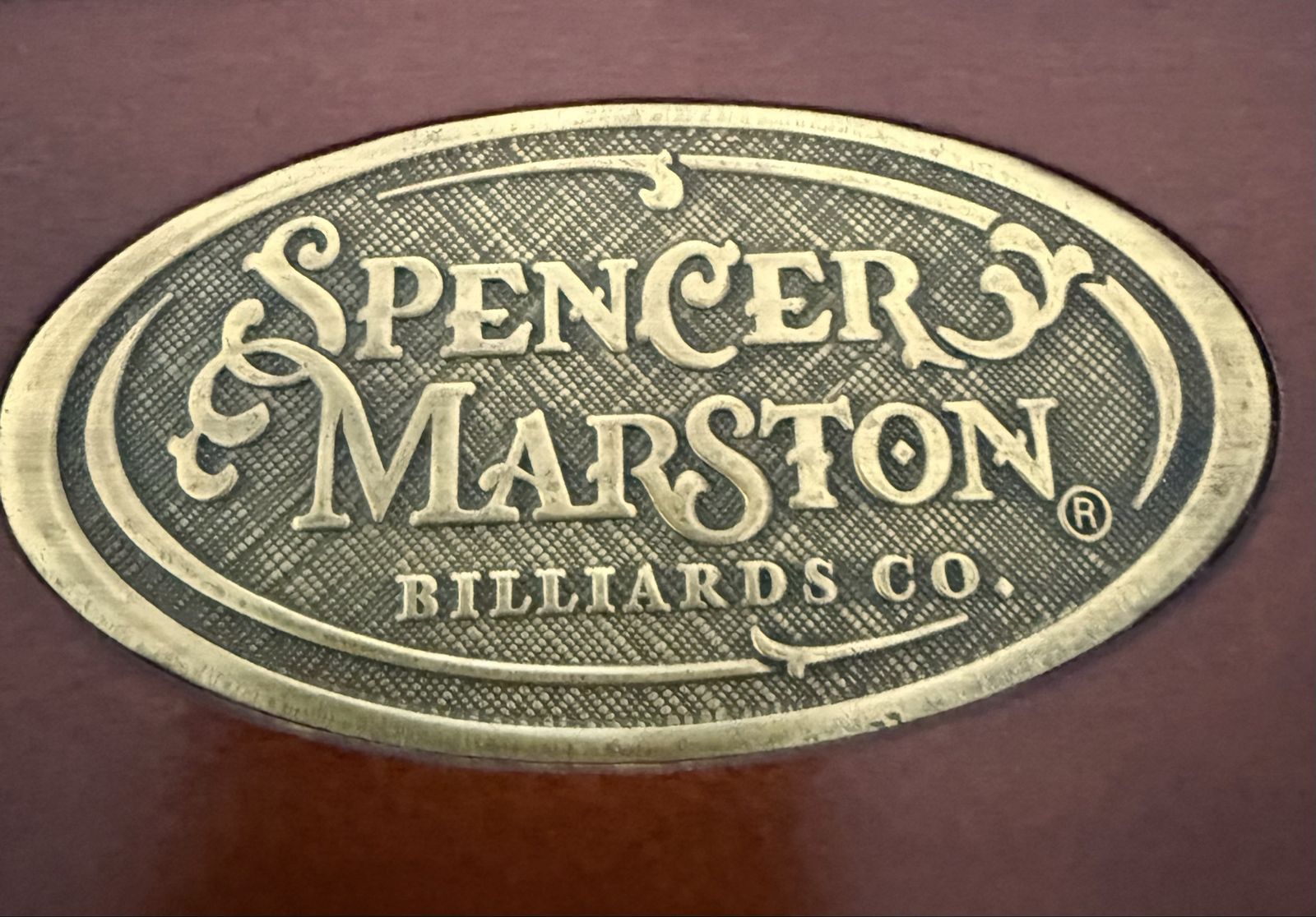 High-end Spencer Marston 8’ slate pool table in excellent condition. Beautiful furniture-grade wood with leather drop pockets and tassels.