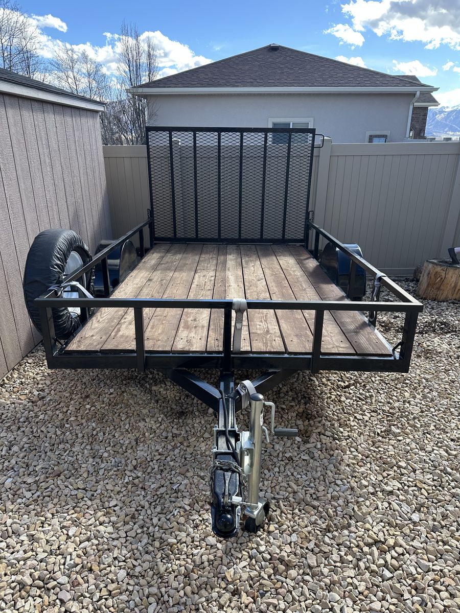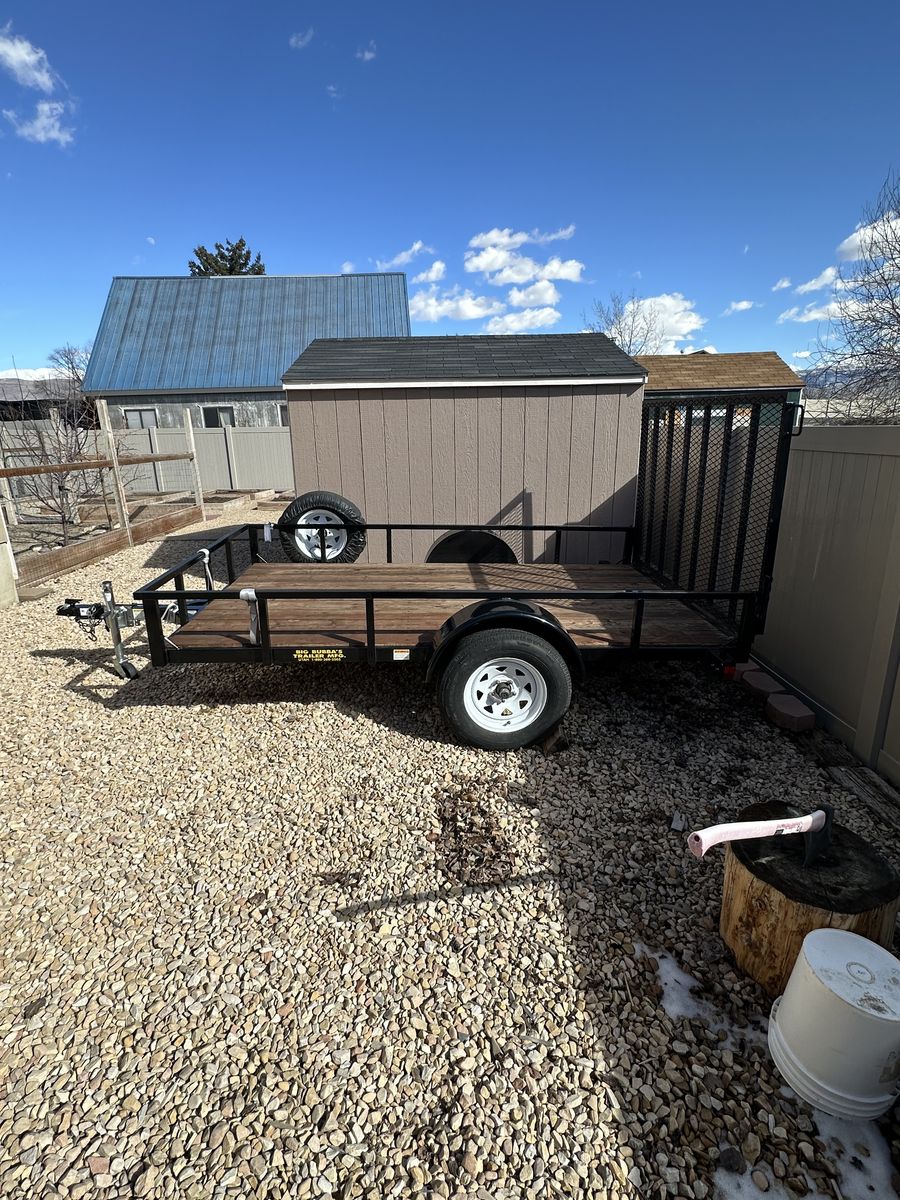 5x10 Big Bubba utility trailer. Very few miles almost like new. wanting to get a smaller one. Deck stained with water sealer every year. Spare tire and fold down loading ramp/gate. Lights work perfect. Tires in great shape.