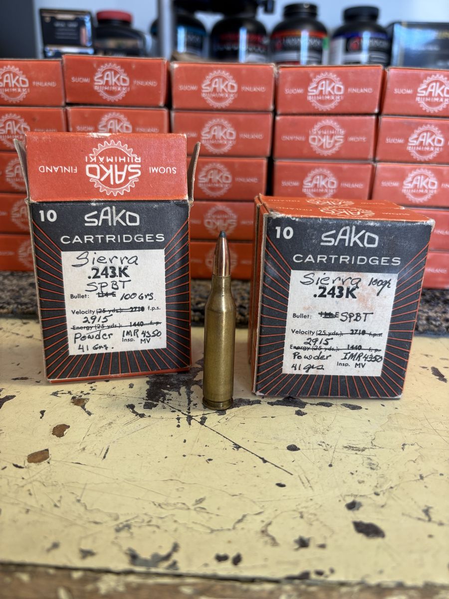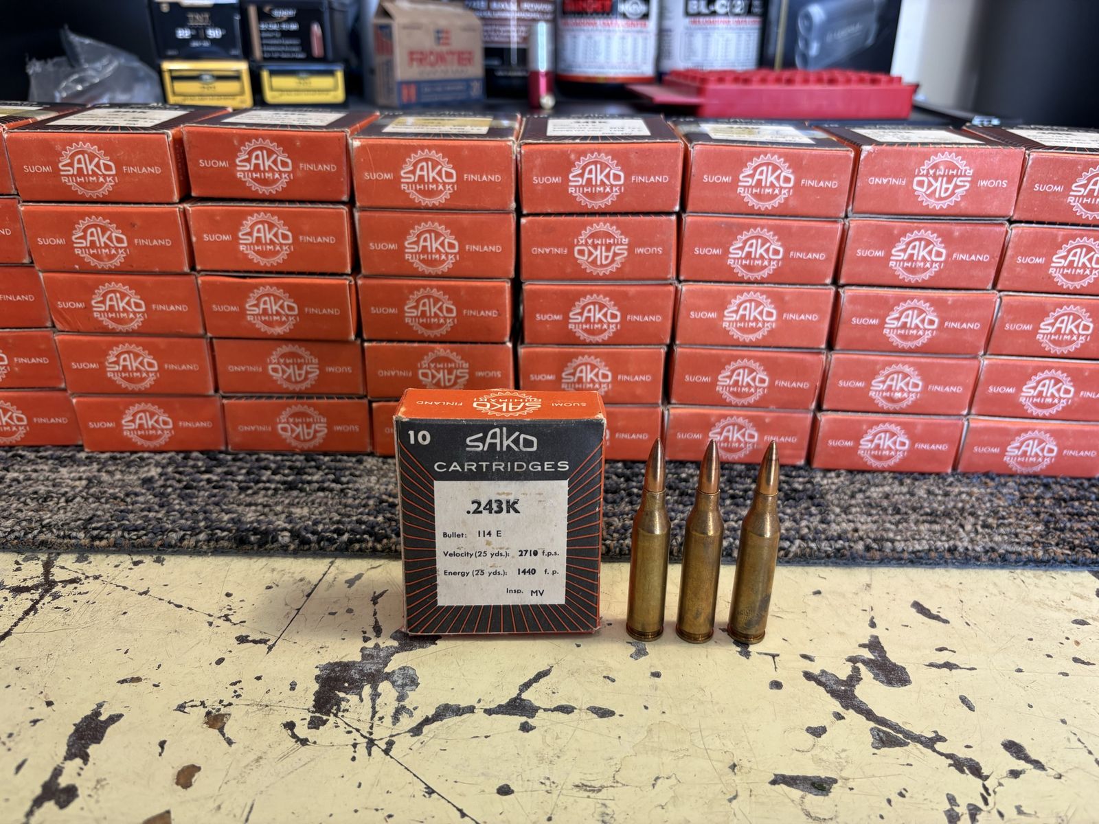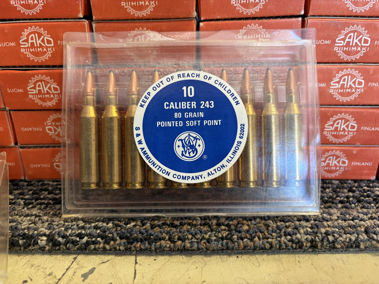 I also have 30 rounds of reloaded .243 ammo. Sako brass with 100 grain Sierra soft point bullets and 50 rounds of nib Smith & Wesson brand 80 grain soft points. Everything included. 527 rounds total. Thank you for looking!
