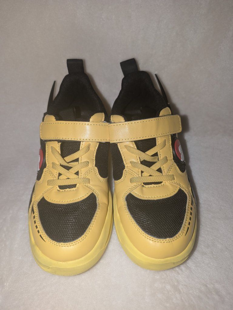 VenmoYellow and black pokemon sneakers, with red and white accents. Velcro strap on top. My son outgrew these before he even wore them. Perfect for pokemon/pikachu enthusiasts. Venmo or cash preferred. I'm available after 5 p.m. Thank you