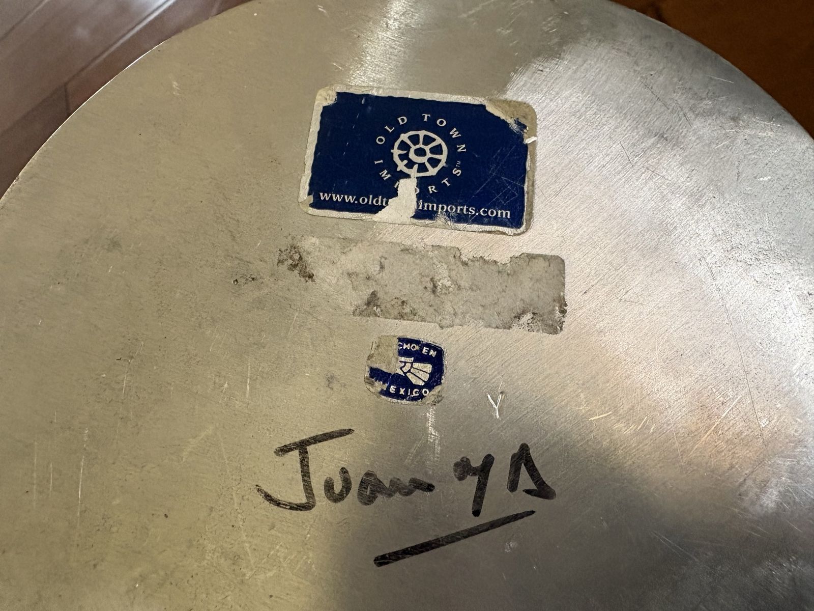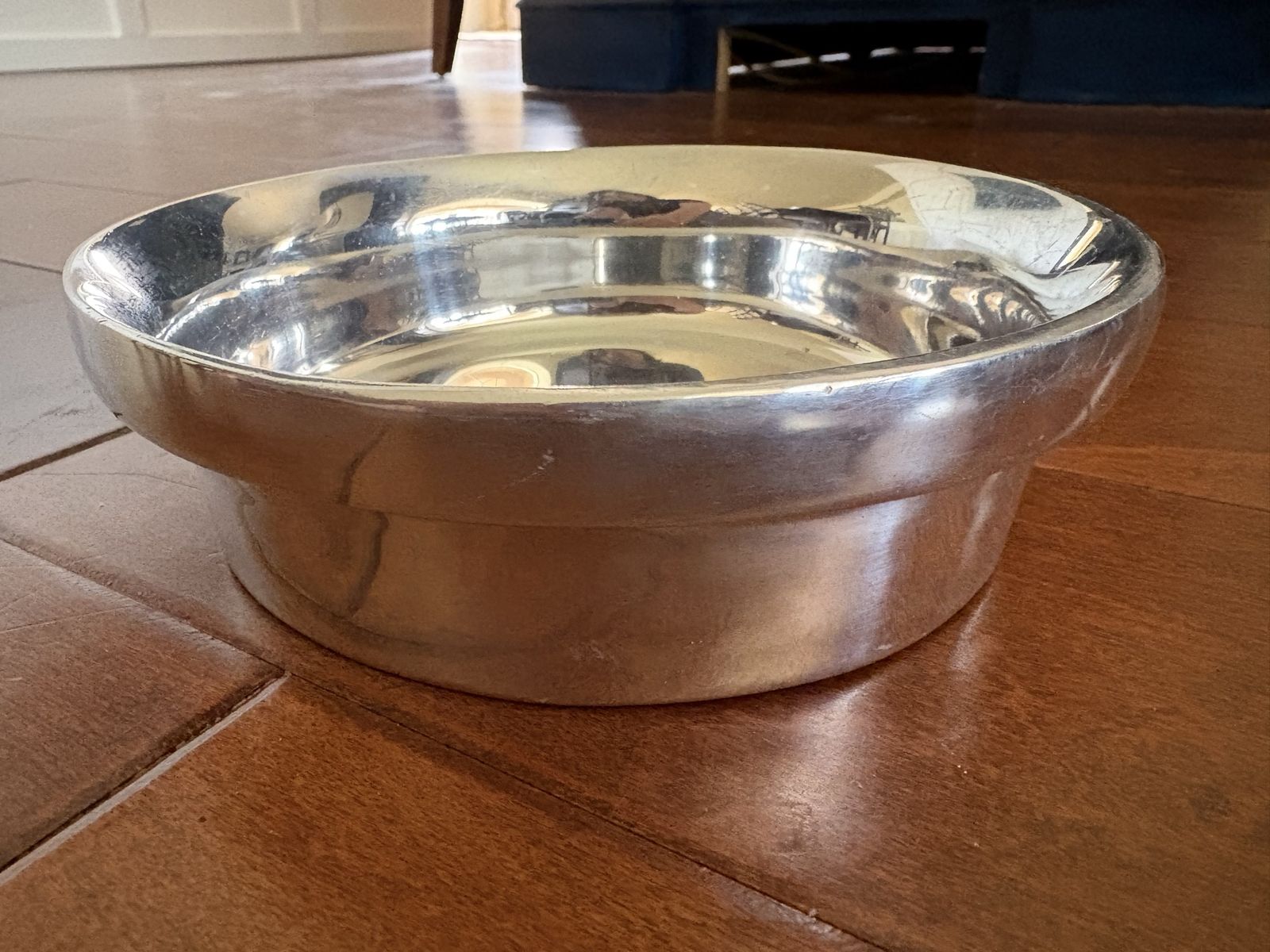 I have a small pewter bowl made by Old Town Imports. It was made in Mexico. It is 7 inches across and 2 inches tall. There are some light scratches on the inside of the bowl. Their website says it should be hand washed. See my other ads for jewelry, artwork, home decor and more.