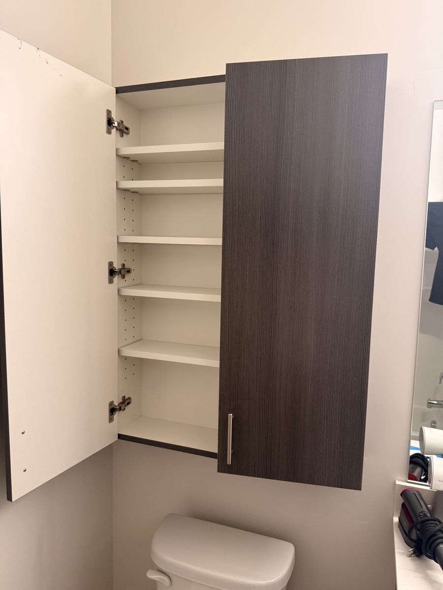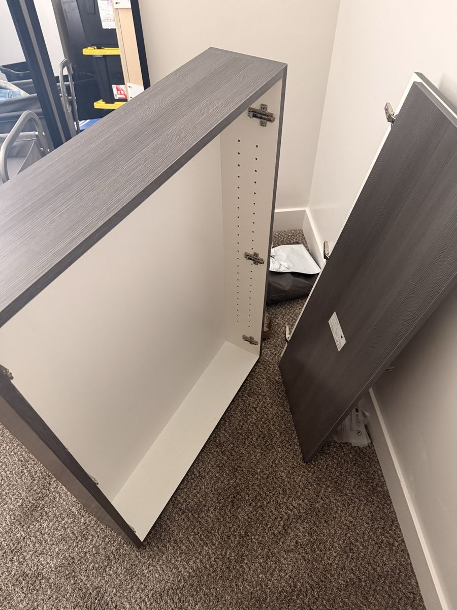 ️ Tall Pantry Cabinet – 36x85 ️ 2 Bathroom/Medicine Cabinets – 30x42 ️ Matching set (modern dark wood) ️ Adjustable shelves + soft-close hinges ️ One is brand new, never installed