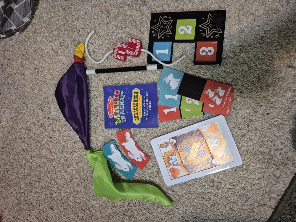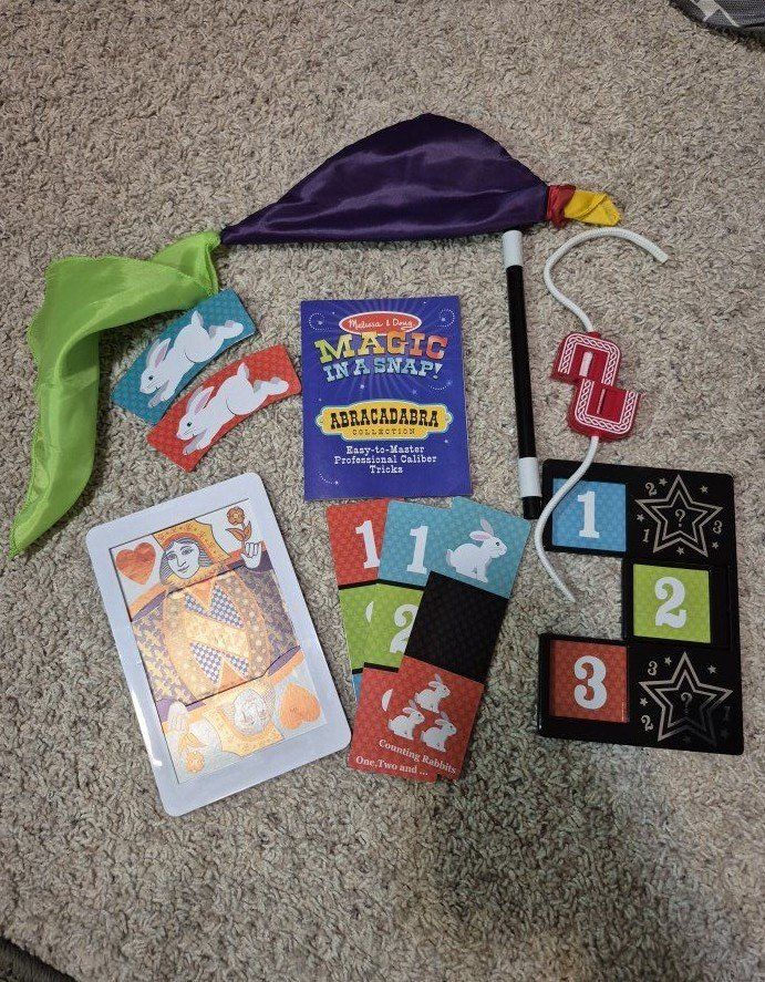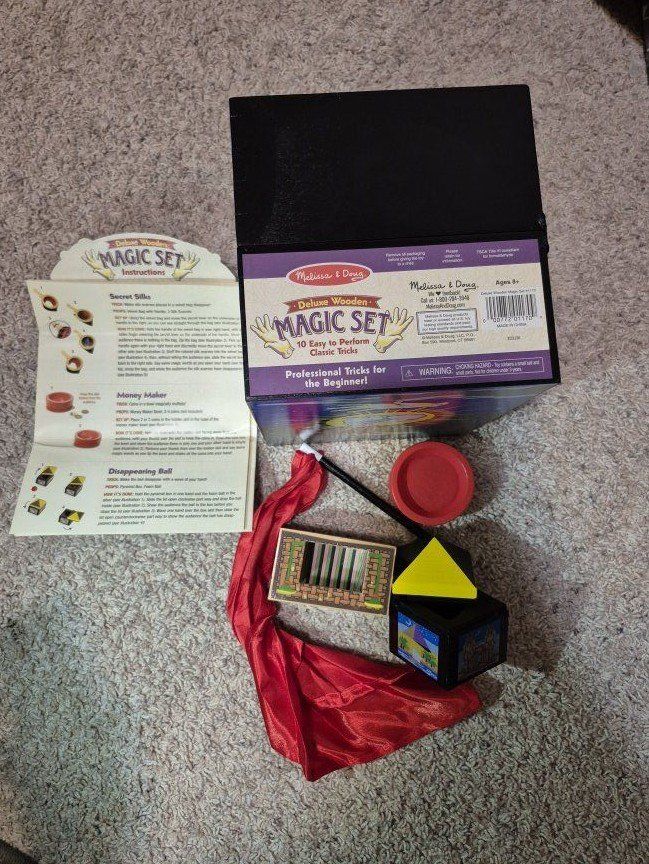 Lot of gently used Melissa & Doug Magic sets, over 20 tricks with these sturdy, quality magic sets!