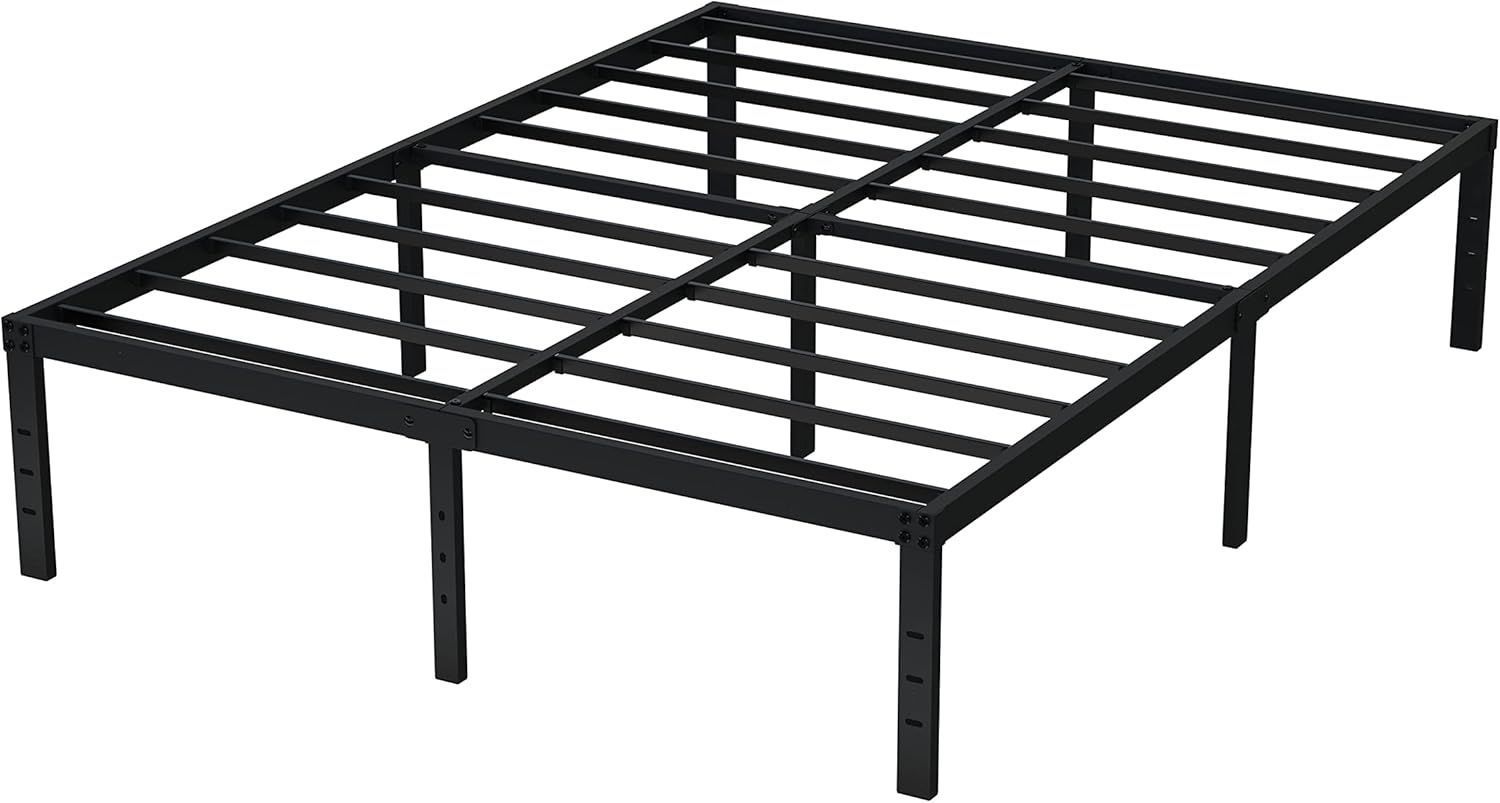 **Why it's great:**The 16-inch height gives you serious under-bed storage — bins, luggage, seasonal items. Steel slat system works with any mattress type (memory foam, hybrid, latex, or innerspring). No box spring needed, which saves you money right out of the gate.