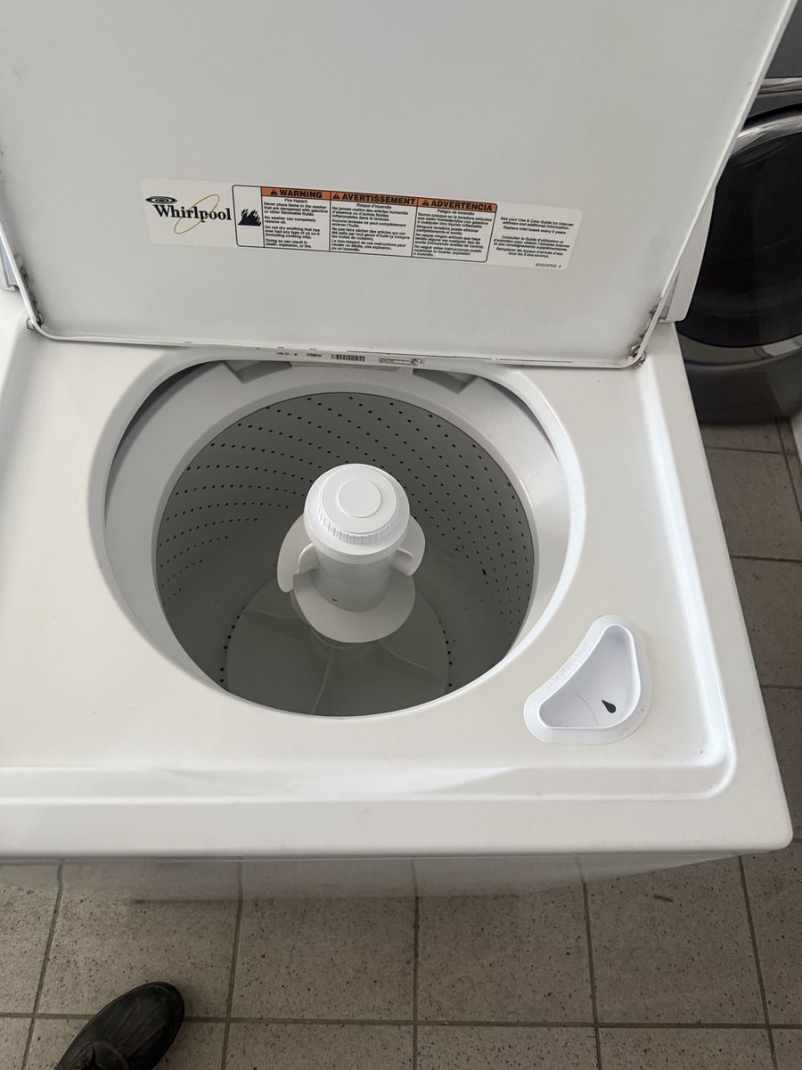 Whirlpool super capacity washer get the job done very well. Has hoses. can deliver cost does apply.