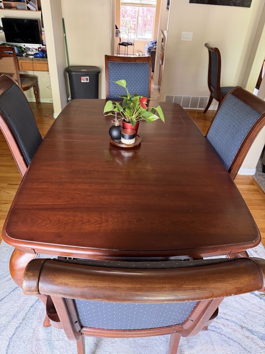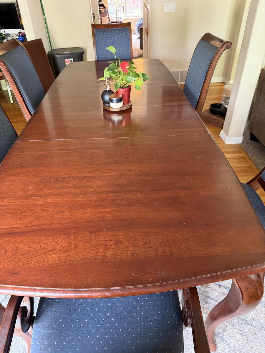 Table: 44” x 108” expanded with 2 leaves, 44” x 72” without leaves.