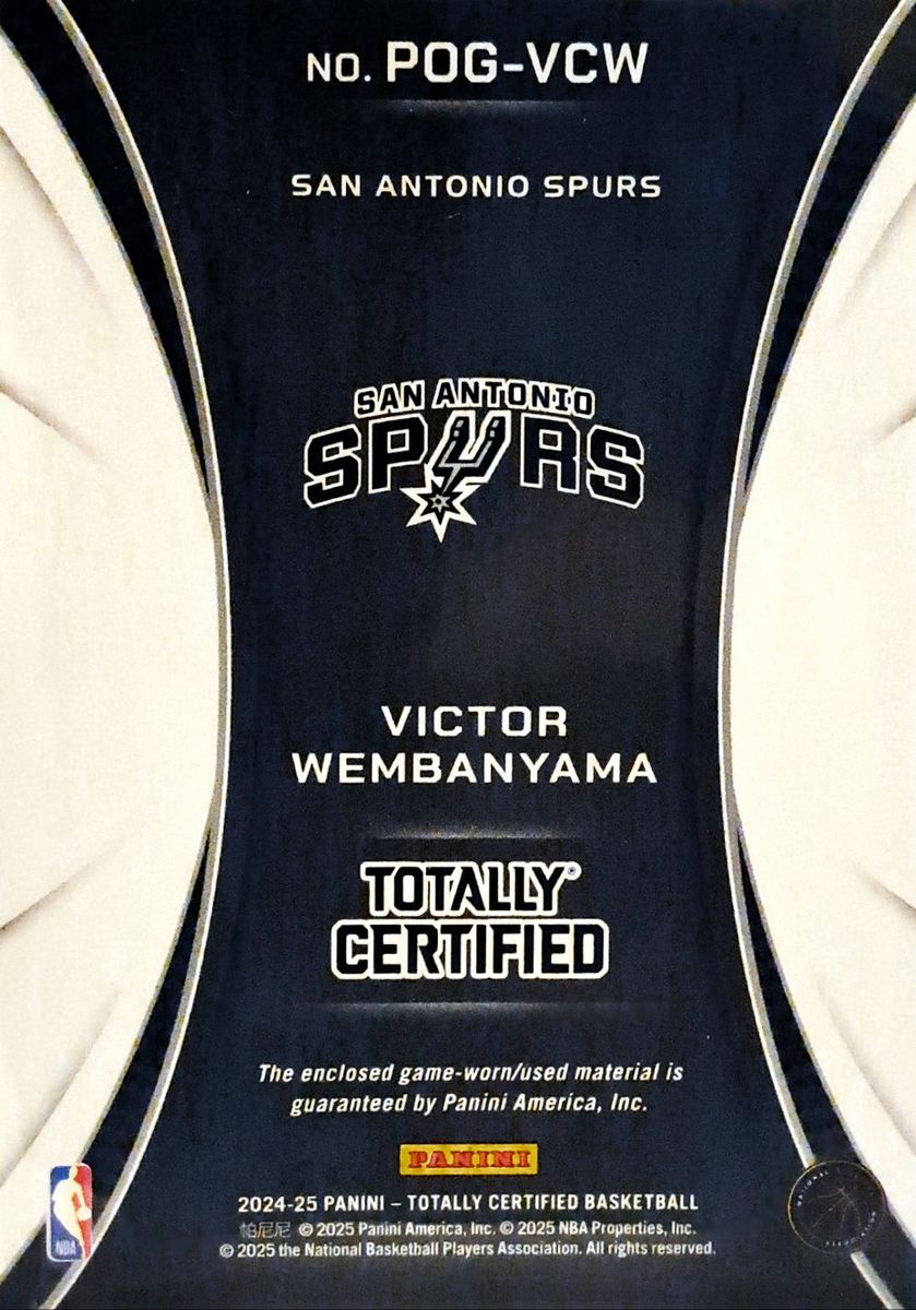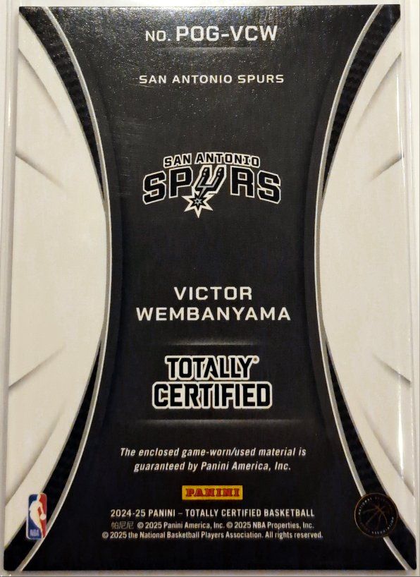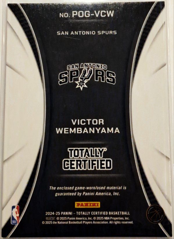 2024-25 Panini Totally Certified Piece of the Game Victor Wembanyama GAME WORN Jersey #POG-VCW. $75 cash only, Mint condition.