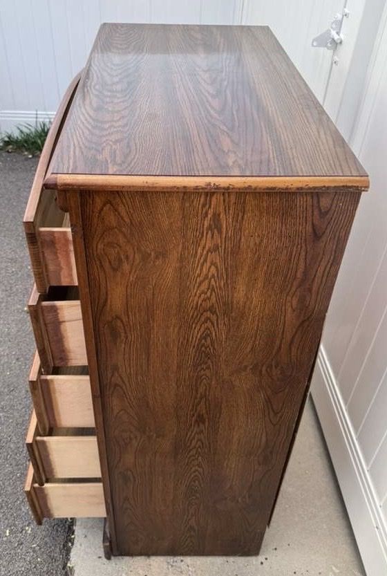 VenmoCute dresser! Has some cosmetic damage at the bottom but drawers all work well. Willing to deliver for $50.