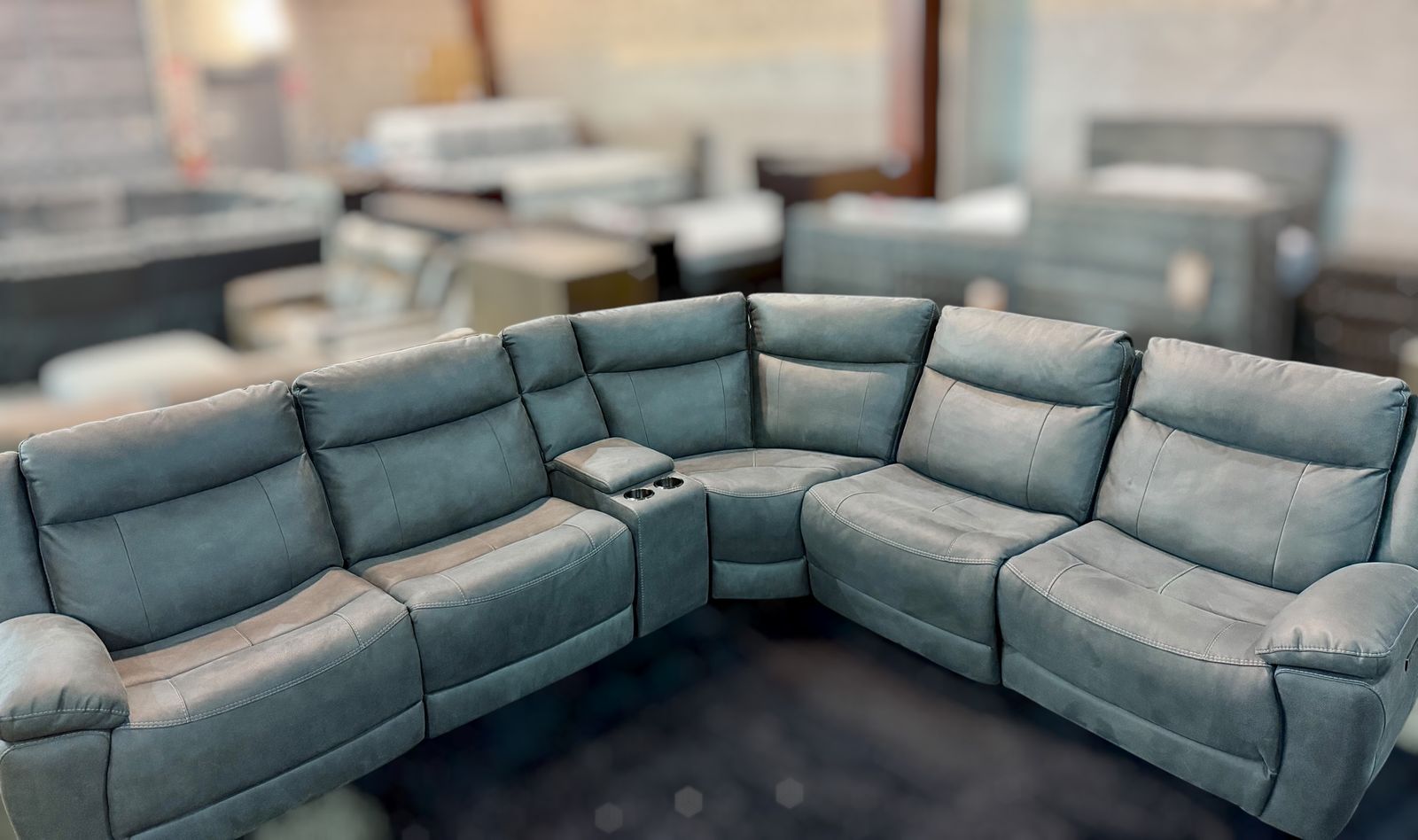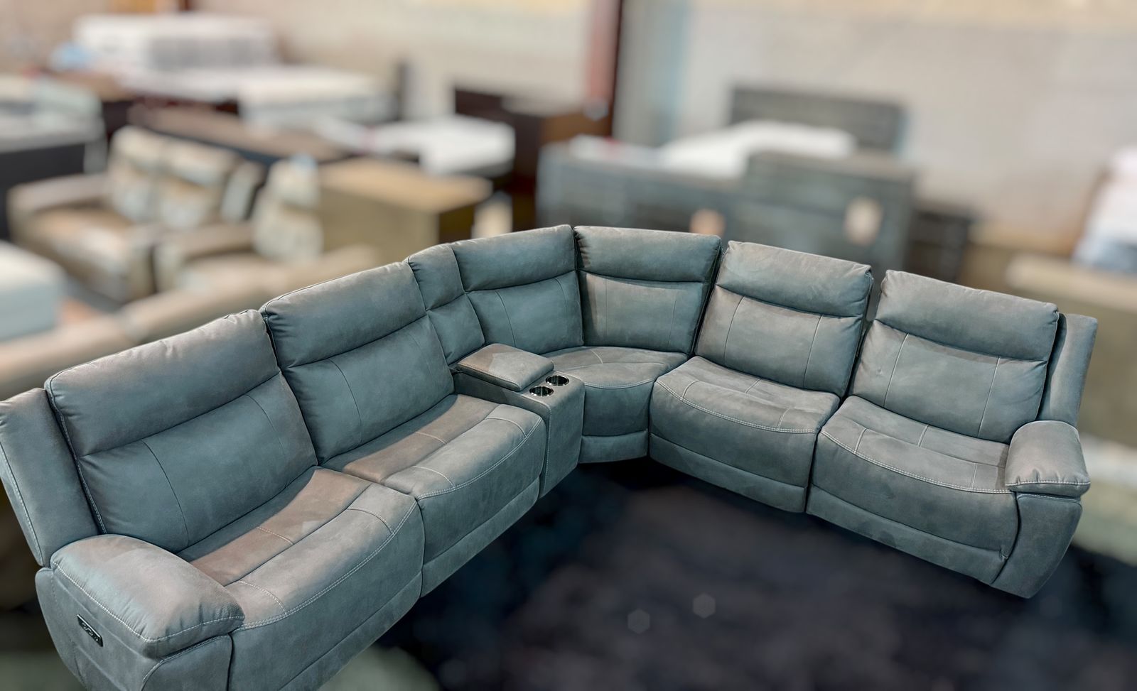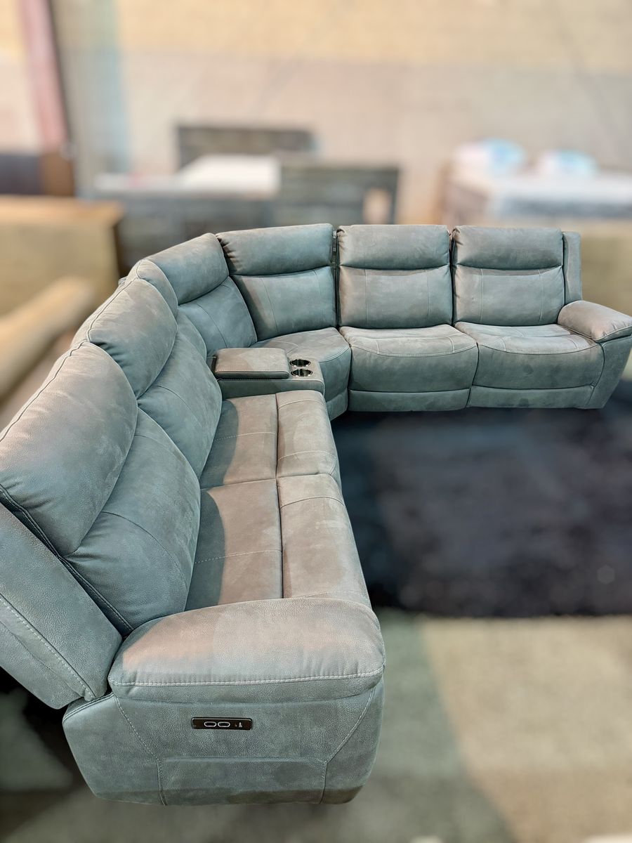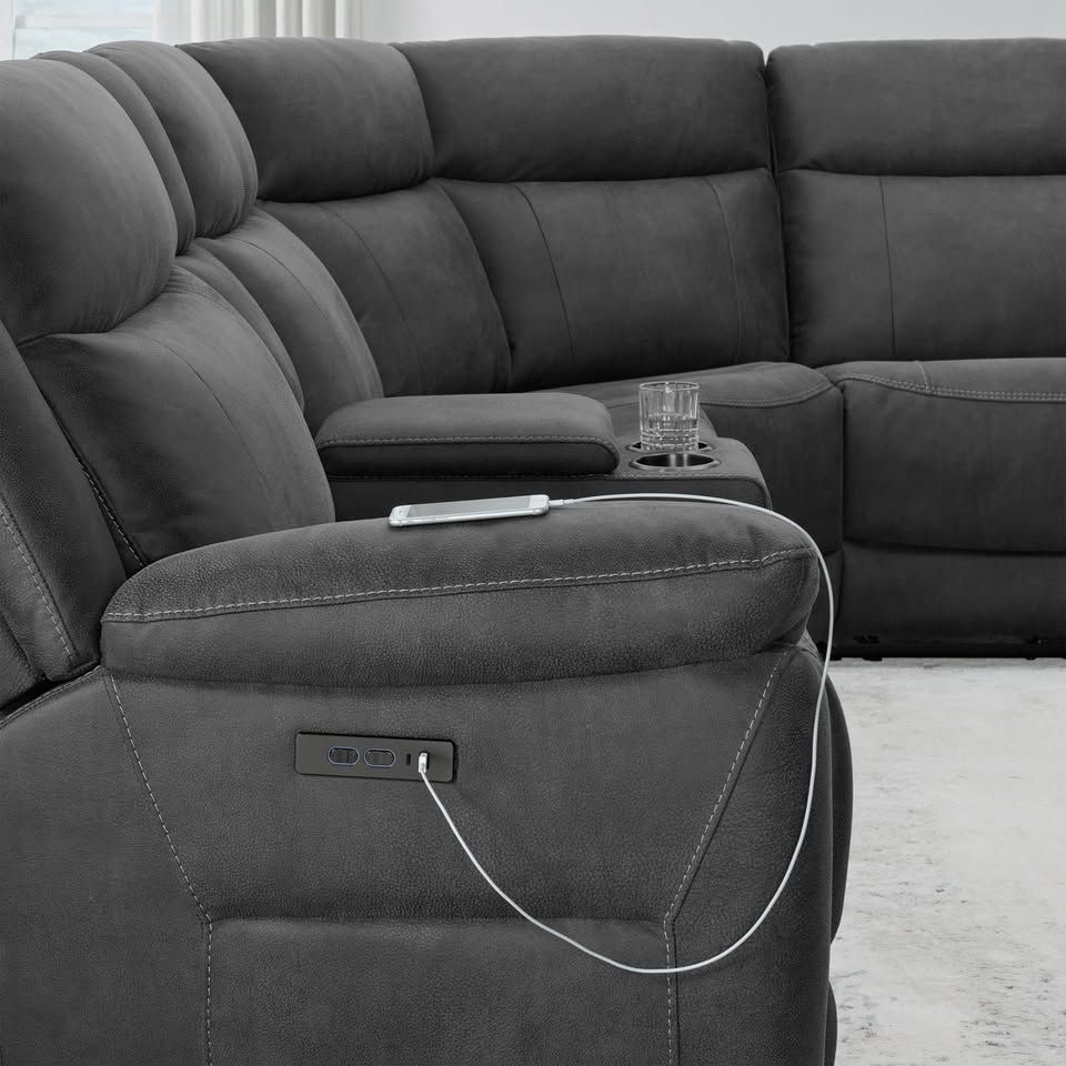Product Highlights 6-piece modular sectional – seats up to 5 people 3 power recliners with power headrests Zero-gravity “CloudZero” reclining comfort system Built-in storage console with cup holders