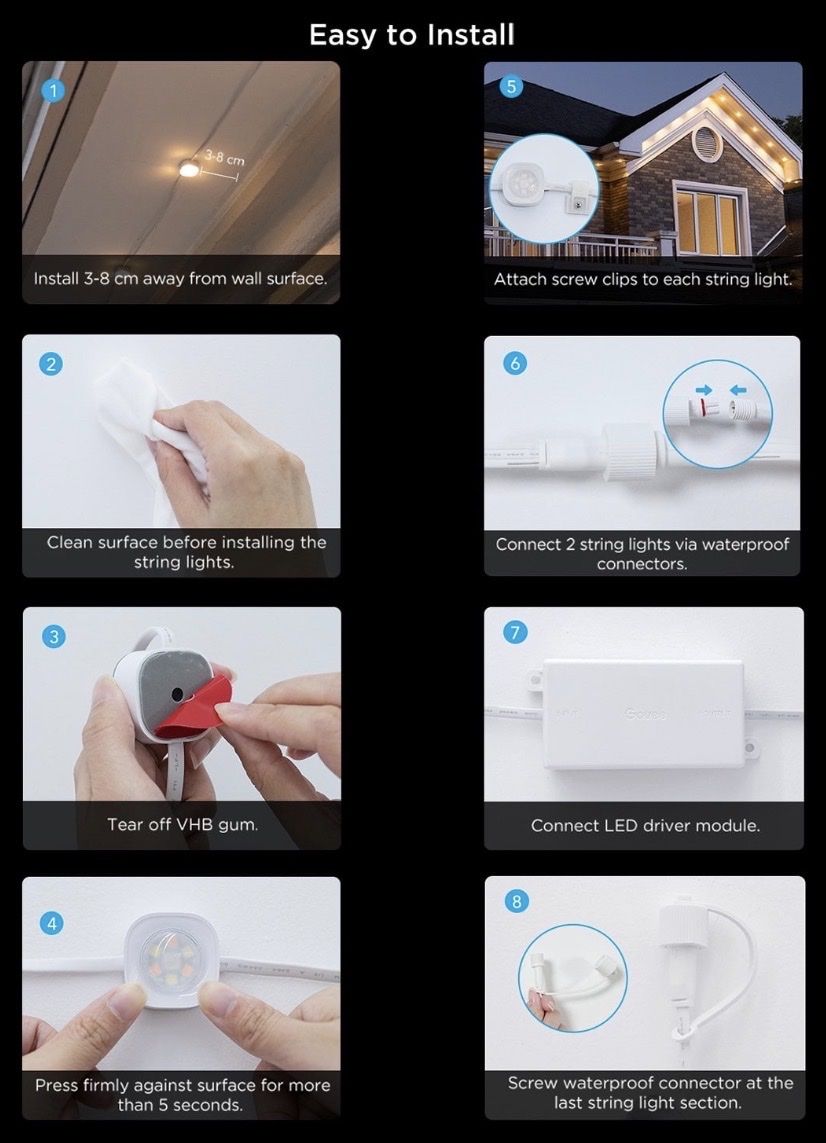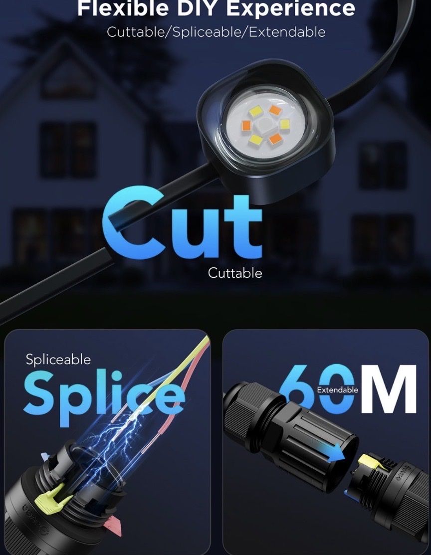 The Govee Permanent Lights Pro offers a truly customizable experience. Featuring a cuttable design, you can trim the strands to fit your exact space and splice them as needed for a personalized and functional setup. *Please note that the lights cannot be extended beyond 150 feet without a Govee driver module, ensuring optimal performance and reliability.