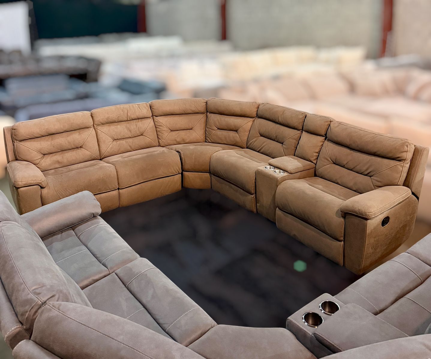 Product Highlights 6-piece sectional – spacious family seating 3 manual reclining seats for ultimate comfort Center storage console with 2 cup holders ️