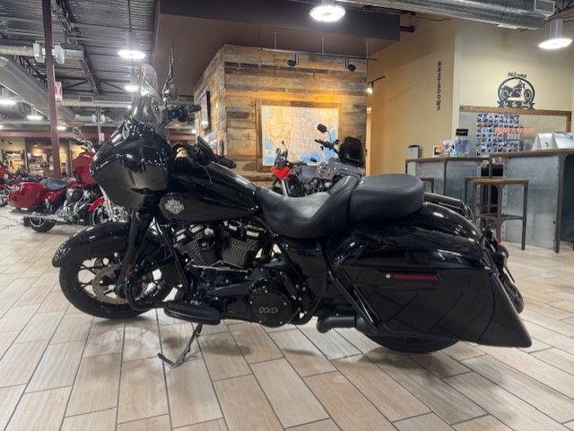 A factory-custom bagger with highway-shredding power, in a blacked-out or chrome finish.