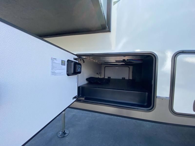 Storage: Massive exterior pass-through storage with slam-latch magnetic doors