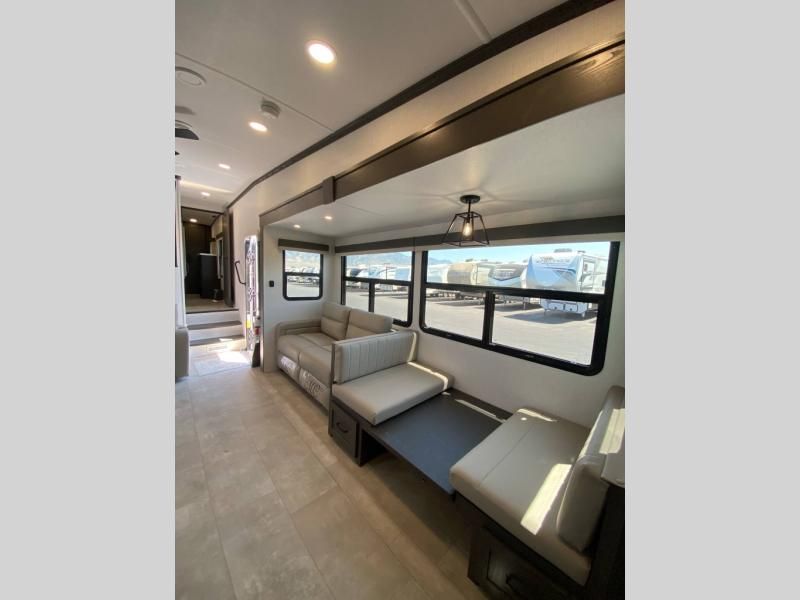 The 2025 Forest River Flagstaff Classic 371RK (Rear Kitchen) is a high-performance luxury fifth wheel designed for travelers who prioritize gourmet cooking and expansive entertaining space. This model is a standout in the Classic series, featuring a sophisticated rear-kitchen layout that offers an incredible amount of counter space and high-end residential appliances. Built with Flagstaff’s superior 6-sided aluminum cage construction and vacuum-bonded walls, the 371RK is engineered for long-term durability and true four-season comfort. With its dual-slide living area, private master suite, and elegant interior finishes, this fifth wheel delivers a refined "home on the road" experience for those who refuse to compromise on quality or amenities.