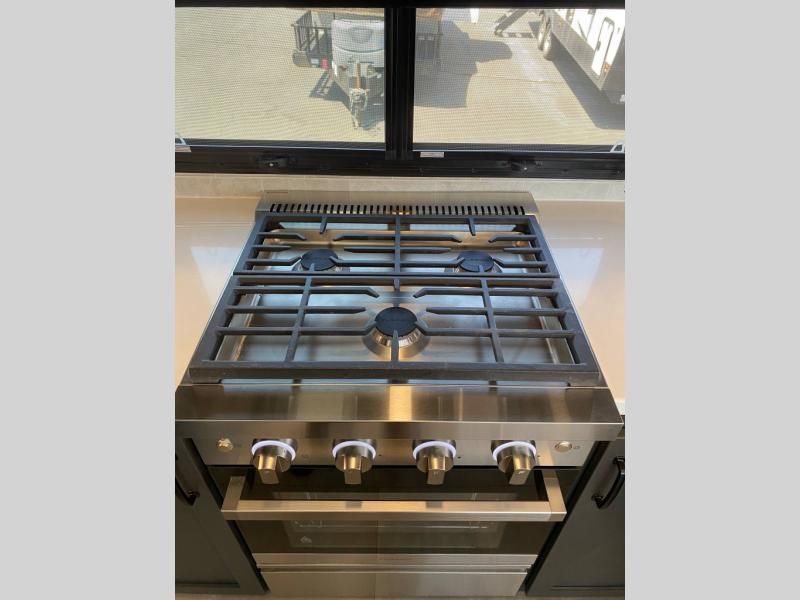Appliances: 18 cu. ft. residential refrigerator, 3-burner high-output gas range with oversized oven, and a convection microwave