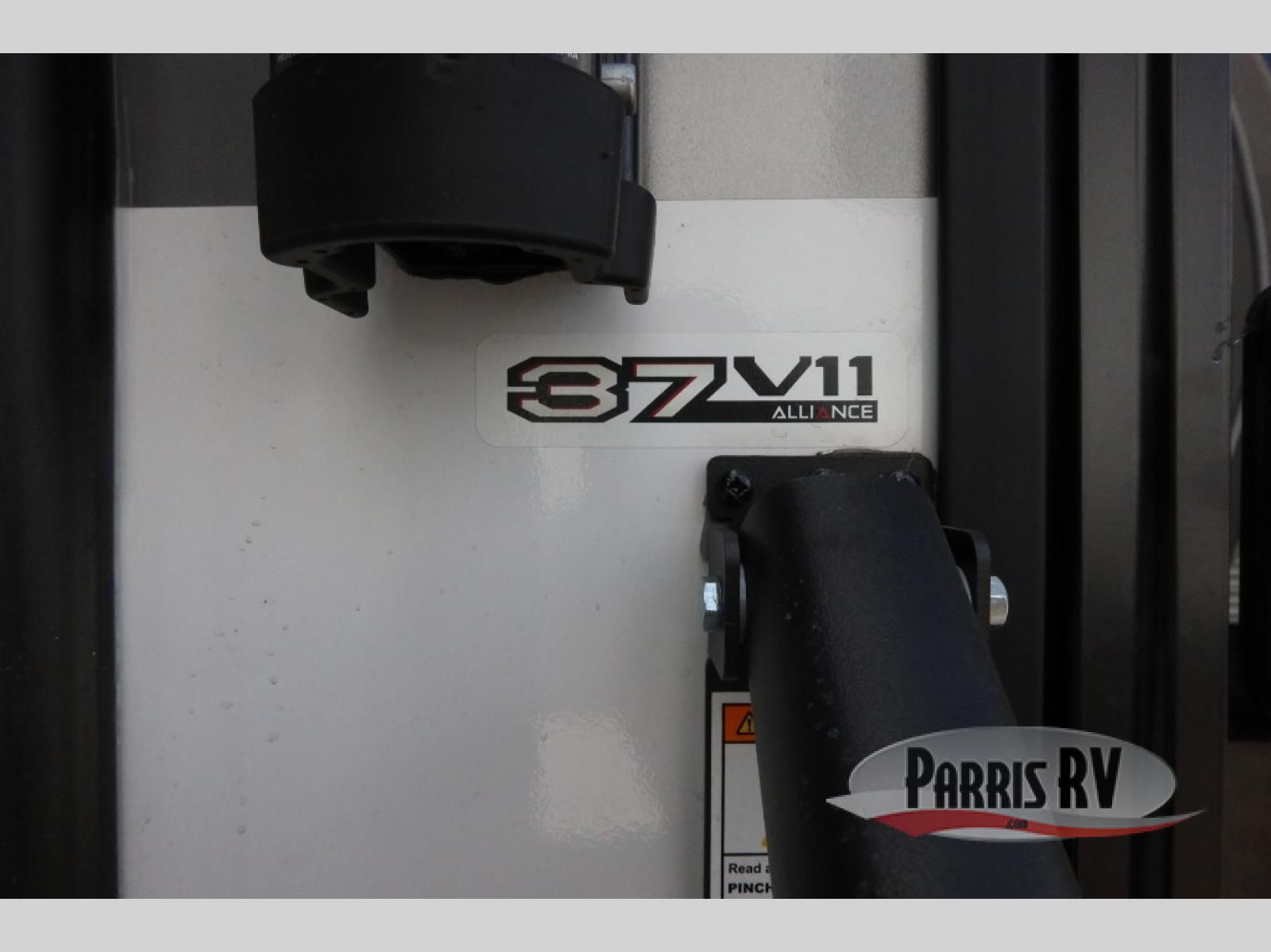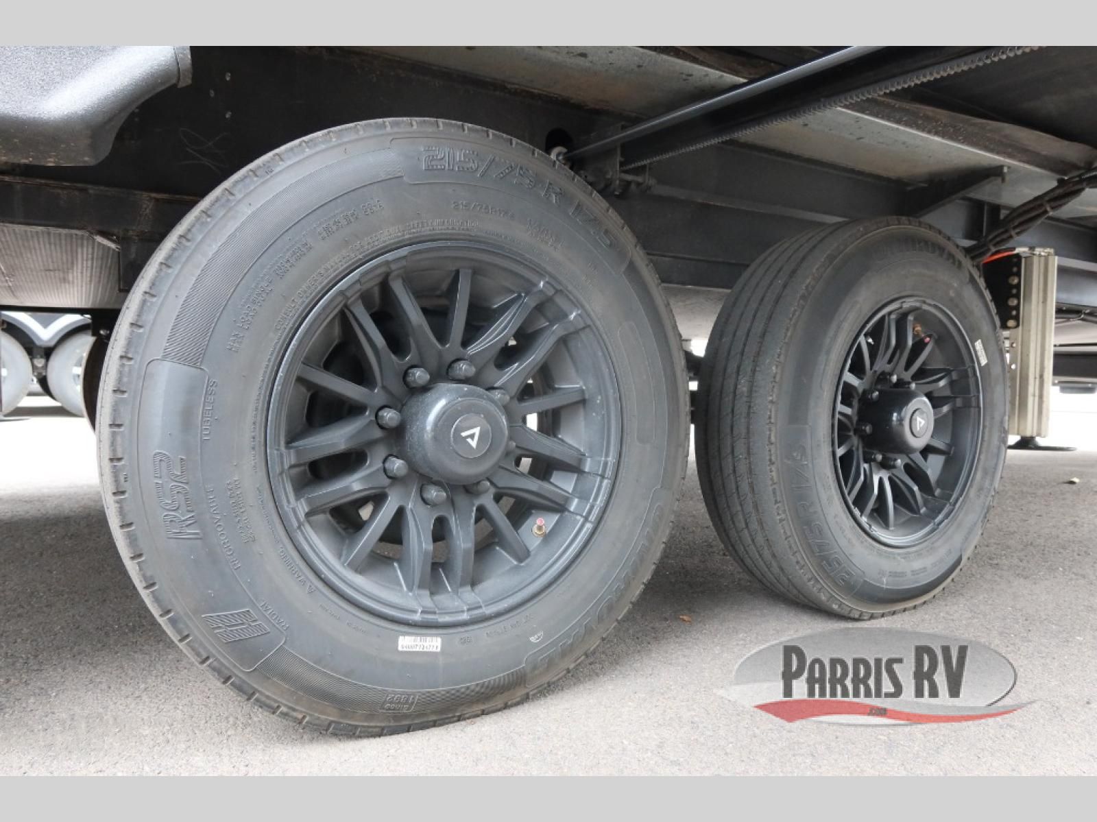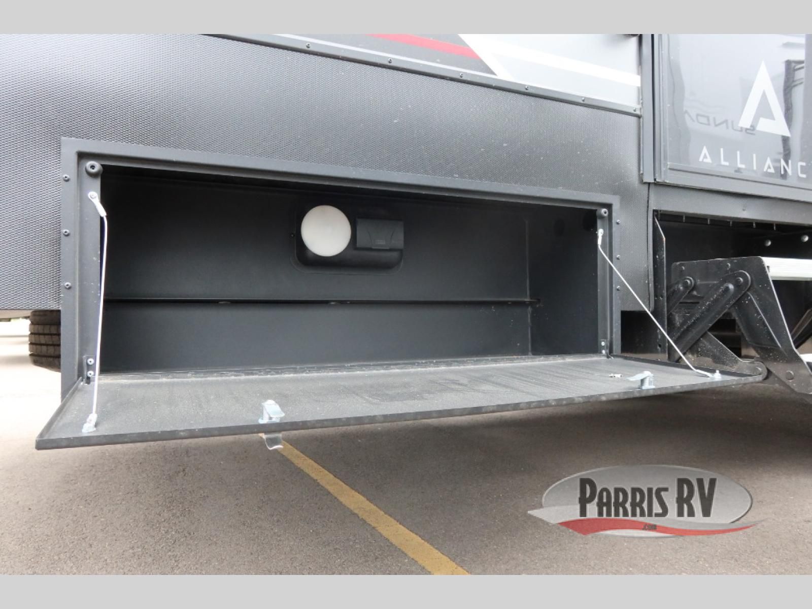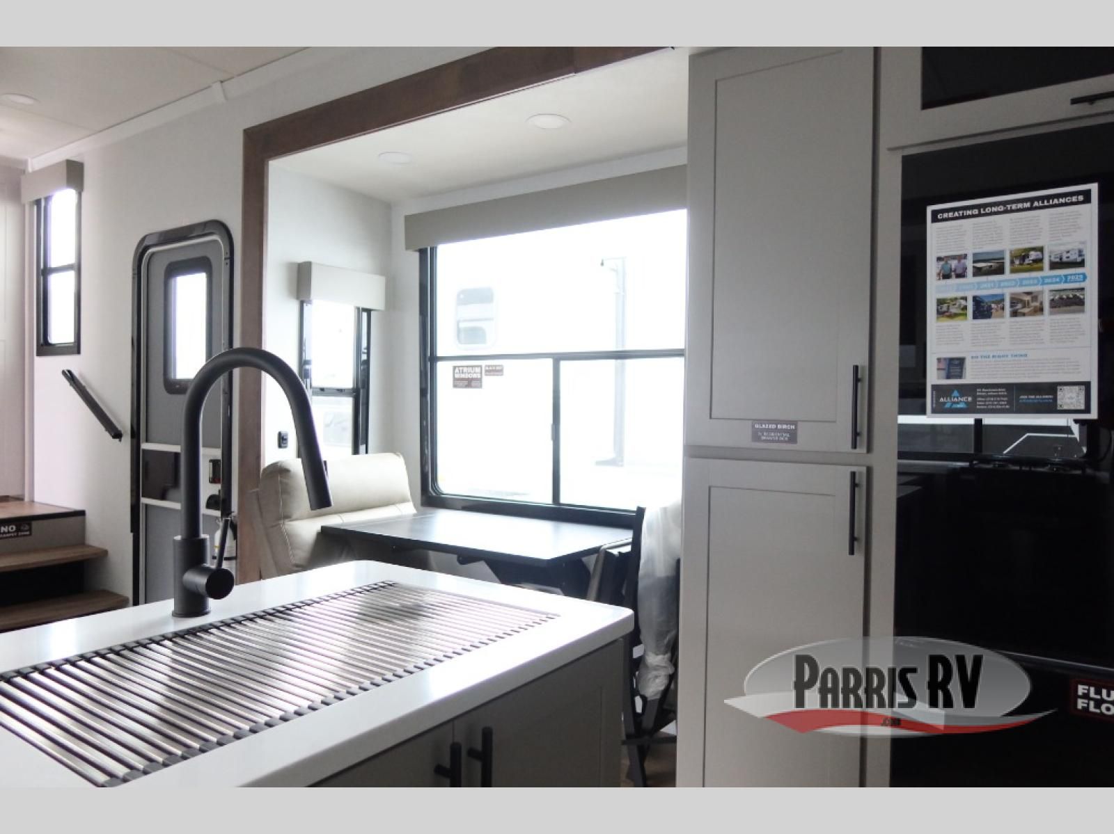 You can bring your toys with you wherever you go with any one of these Alliance RV Valor toy hauler fifth wheels! They are adventure-ready with a quality build from the walk on roof with seamless PVC roof covering to the commercial grade vinyl flooring and MorRyde CRE3000 suspension system. The Performance Running Gear package comes with a 101" wide-body benchmark chassis platform, Dexter axles, and a space enhancing drop frame storage compartment to pack in all your riding gear. You can even go off-gridding thanks to the Off the Grid Pack that has two 400-watt solar panels, generator prep, a 60-amp charge controller, and a 100-amp hour lithium iron phosphate battery. Some of the interior comforts you will enjoy are the hardwood cabinet doors and drawers, solid surface kitchen countertops, and commercial grade vinyl flooring with no carpet to make clean up a breeze. The Valor toy haulers are also the Masters of 12 Volt with USB charging station throughout, a 12V refrigerator, and more 12-volt features to make camping hassle-free!