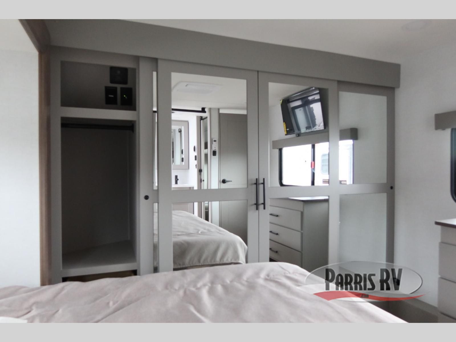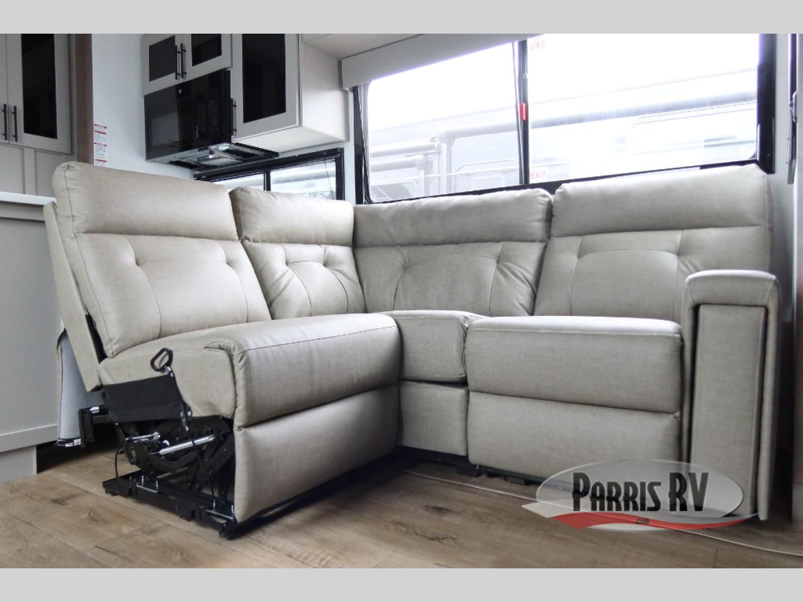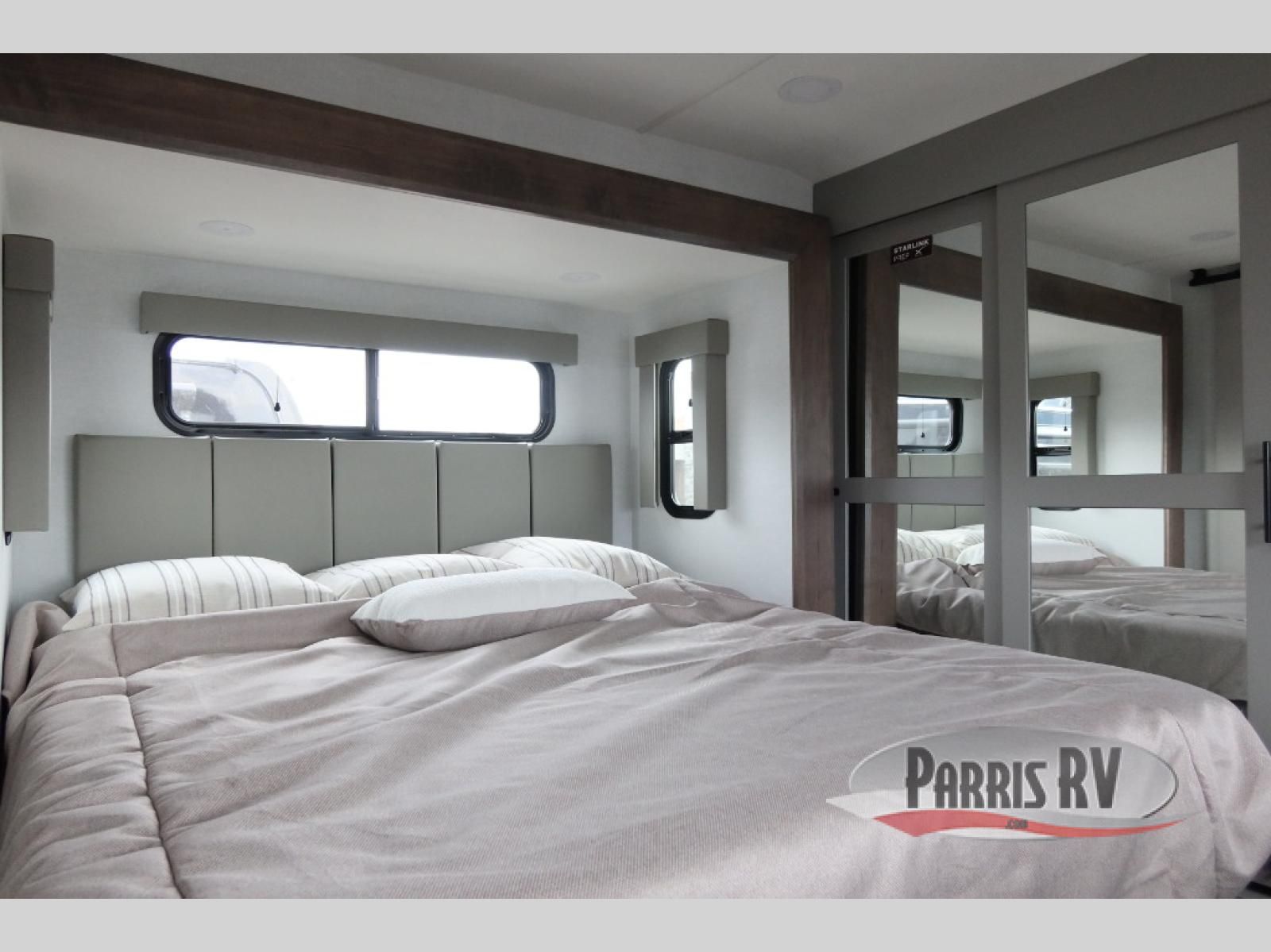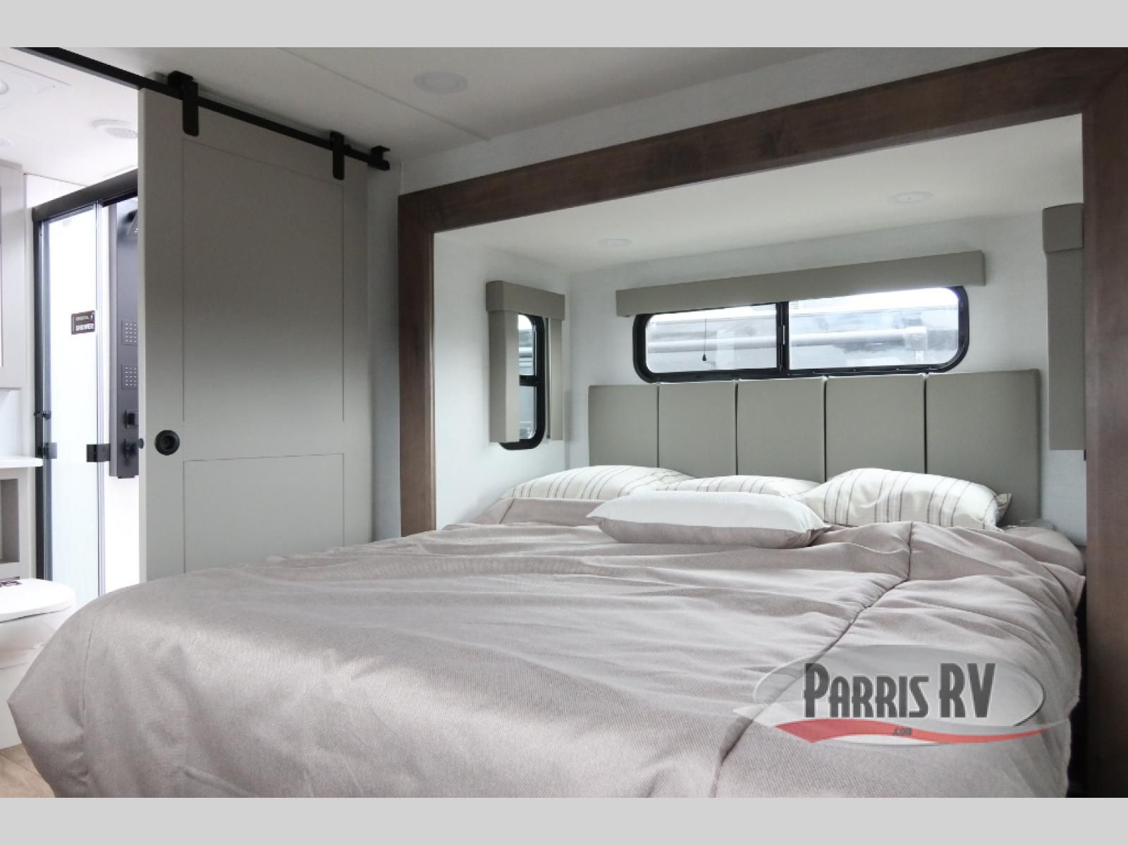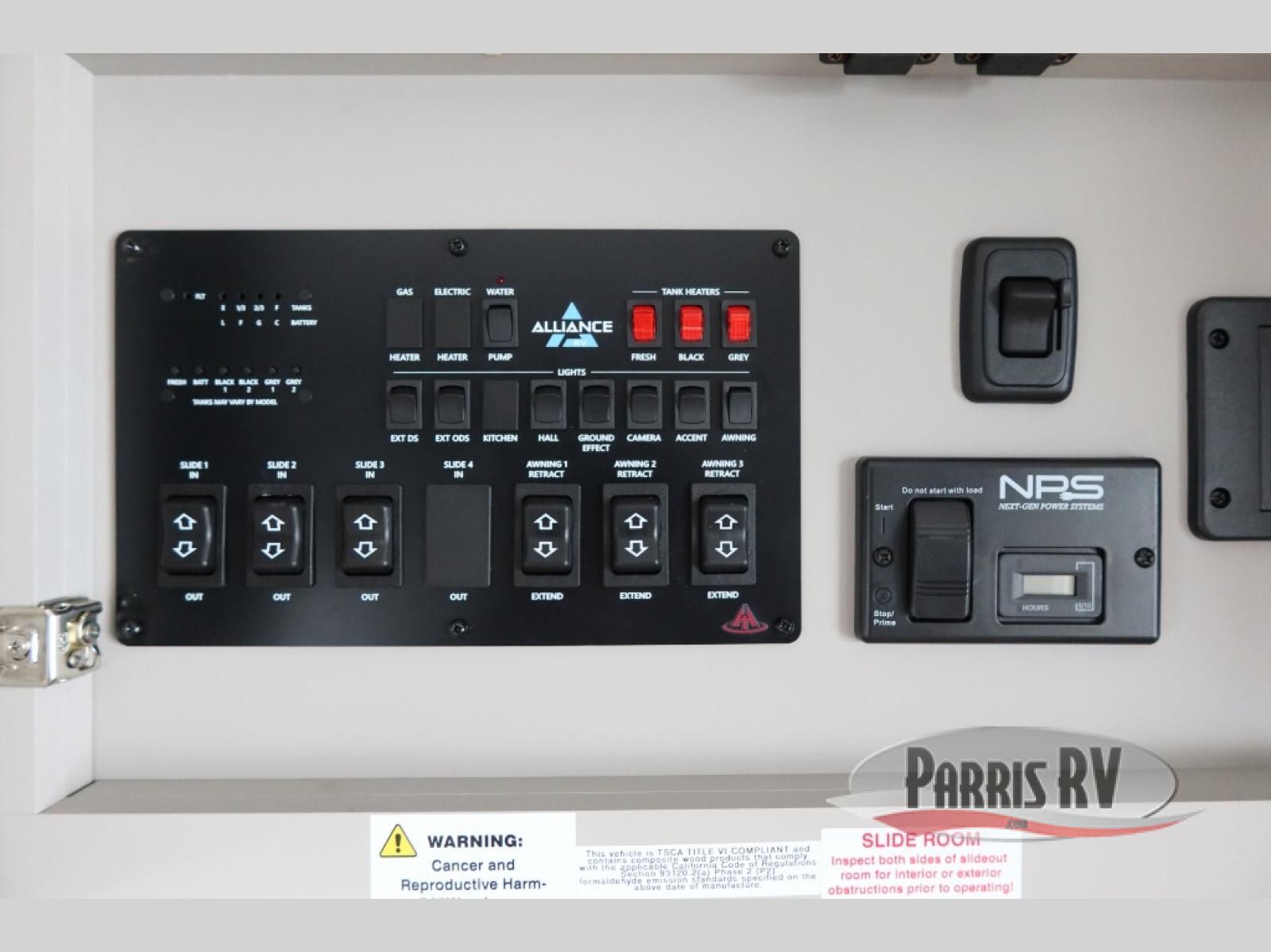 You can bring your toys with you wherever you go with any one of these Alliance RV Valor toy hauler fifth wheels! They are adventure-ready with a quality build from the walk on roof with seamless PVC roof covering to the commercial grade vinyl flooring and MorRyde CRE3000 suspension system. The Performance Running Gear package comes with a 101" wide-body benchmark chassis platform, Dexter axles, and a space enhancing drop frame storage compartment to pack in all your riding gear. You can even go off-gridding thanks to the Off the Grid Pack that has two 400-watt solar panels, generator prep, a 60-amp charge controller, and a 100-amp hour lithium iron phosphate battery. Some of the interior comforts you will enjoy are the hardwood cabinet doors and drawers, solid surface kitchen countertops, and commercial grade vinyl flooring with no carpet to make clean up a breeze. The Valor toy haulers are also the Masters of 12 Volt with USB charging station throughout, a 12V refrigerator, and more 12-volt features to make camping hassle-free!