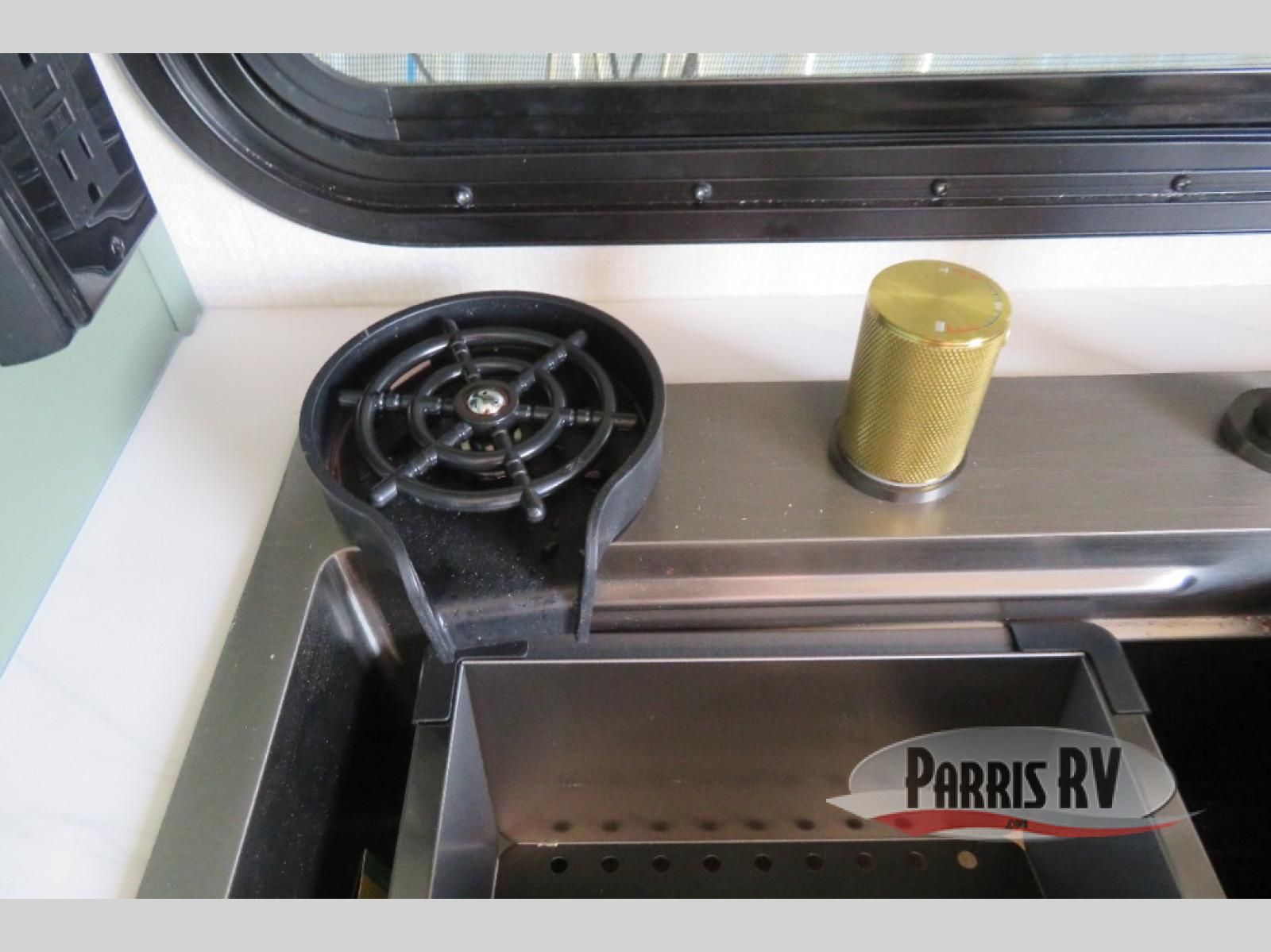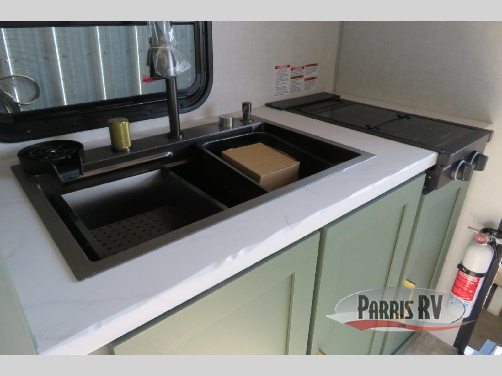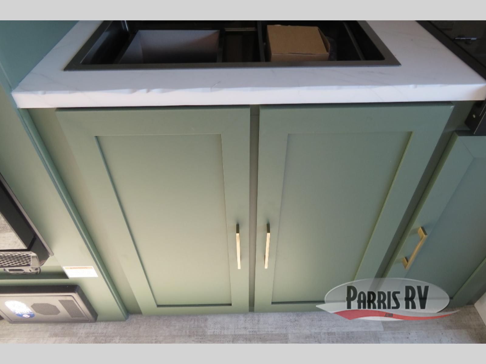 This easy to tow trailer is perfect for weekend trips to the lake! Once you're set up at camp, put out the patio awning, make lunch on the outside kitchen, and grab your camp chairs from the slam latch cargo doors with pass-thru lighting. The kitchen includes an all-in-one microwave and air fryer, plus a pantry and refrigerator for food storage. When it's time to call it a night, the front queen bed with a U-shaped dinette is sure to bring comfort! The Beast Mode Package on this model comes with an additional 200W solar panel, a 2,000W inverter, and an independent suspension for better clearance and handling!