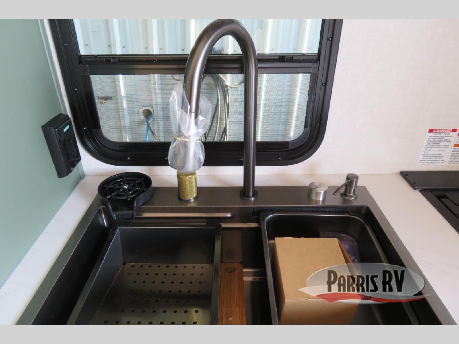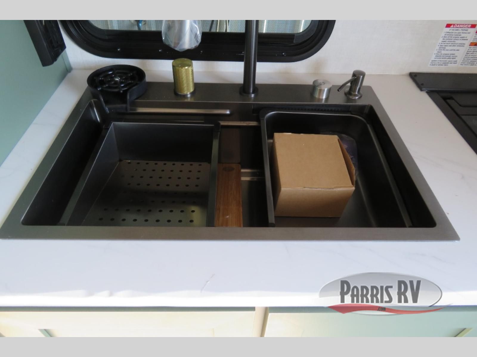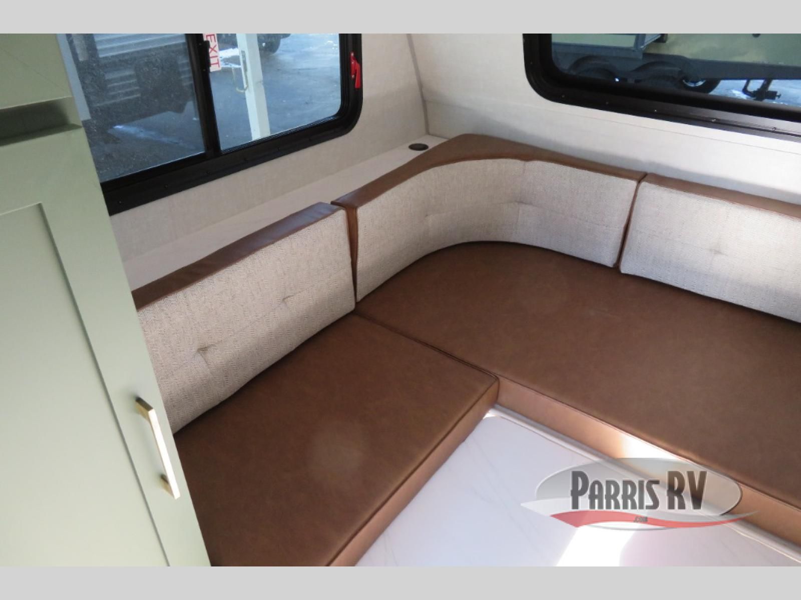 This easy to tow trailer is perfect for weekend trips to the lake! Once you're set up at camp, put out the patio awning, make lunch on the outside kitchen, and grab your camp chairs from the slam latch cargo doors with pass-thru lighting. The kitchen includes an all-in-one microwave and air fryer, plus a pantry and refrigerator for food storage. When it's time to call it a night, the front queen bed with a U-shaped dinette is sure to bring comfort! The Beast Mode Package on this model comes with an additional 200W solar panel, a 2,000W inverter, and an independent suspension for better clearance and handling!